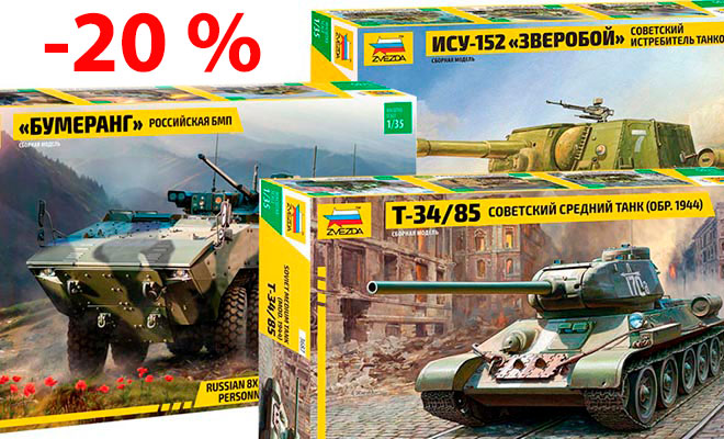 Скидка 20% на любой товар фирмы Звезда!!! Модели, краску, инструмент!