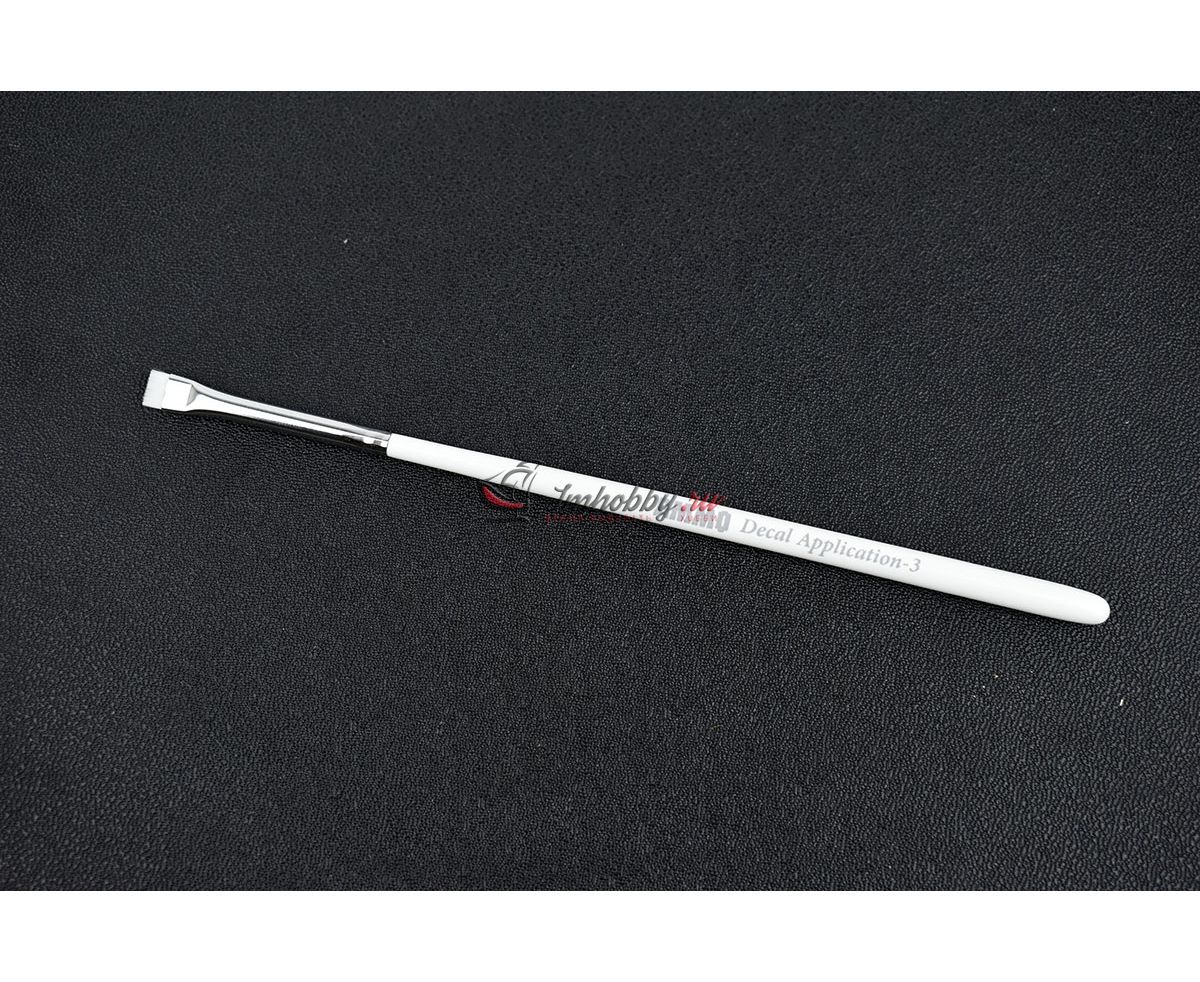 Кисть для нанесения декалей №3 Ammo Mig AMIG8708 (данная кисть): Эта специальная кисть для нанесения наклеек предназначена для того, чтобы помочь вам с самыми маленькими и, прежде всего, самыми сложными наклейками. Состав кисти чрезвычайно мягкий и короче, чем номер два, что позволяет прилагать небольшое давление в местах, где поверхность имеет контуры и сложные детали поверхности.