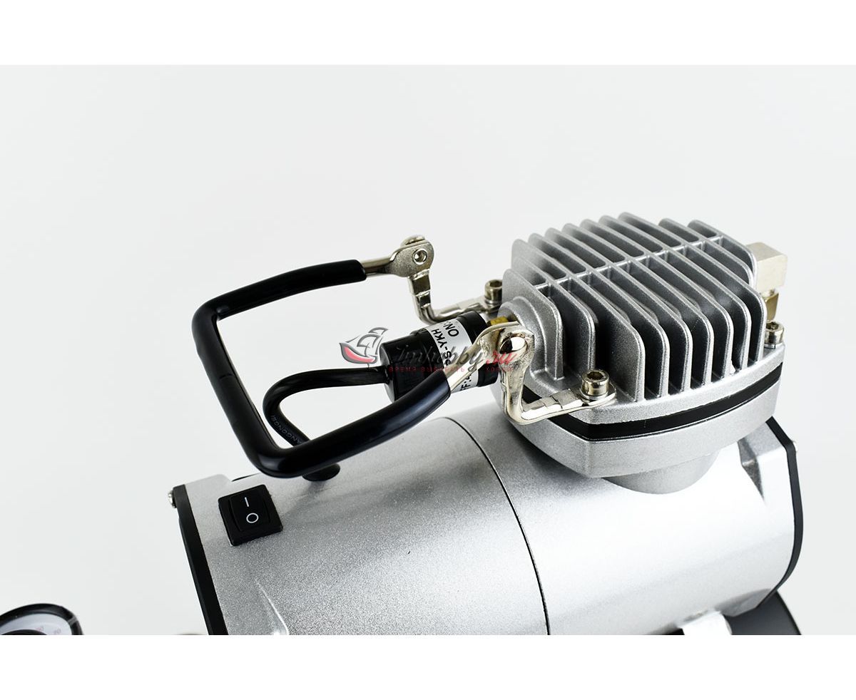 Профессиональная, сбалансированная модель 1203 от JAS, оснащенная всем необходимым оборудованием. Встроенный ресивер объемом 3 л исключает возможные пульсации при работе, поддерживает давление, а так же охлаждает воздух. Регулятор давления позволяет работать в диапазоне 0,2 - 4 атмосфер. Встроенный фильтр на выходе очищает воздух от пыли и влаги, что очень актуально при работе с аэрографом. Компрессор оборудован защитой от перегрева и повышенного давления. При достижении опасного уровня давления или температуры компрессор автоматически отключается. Также к достоинствам данного компрессора можно отнести малое потребление электроэнергии и низкий уровень шума.