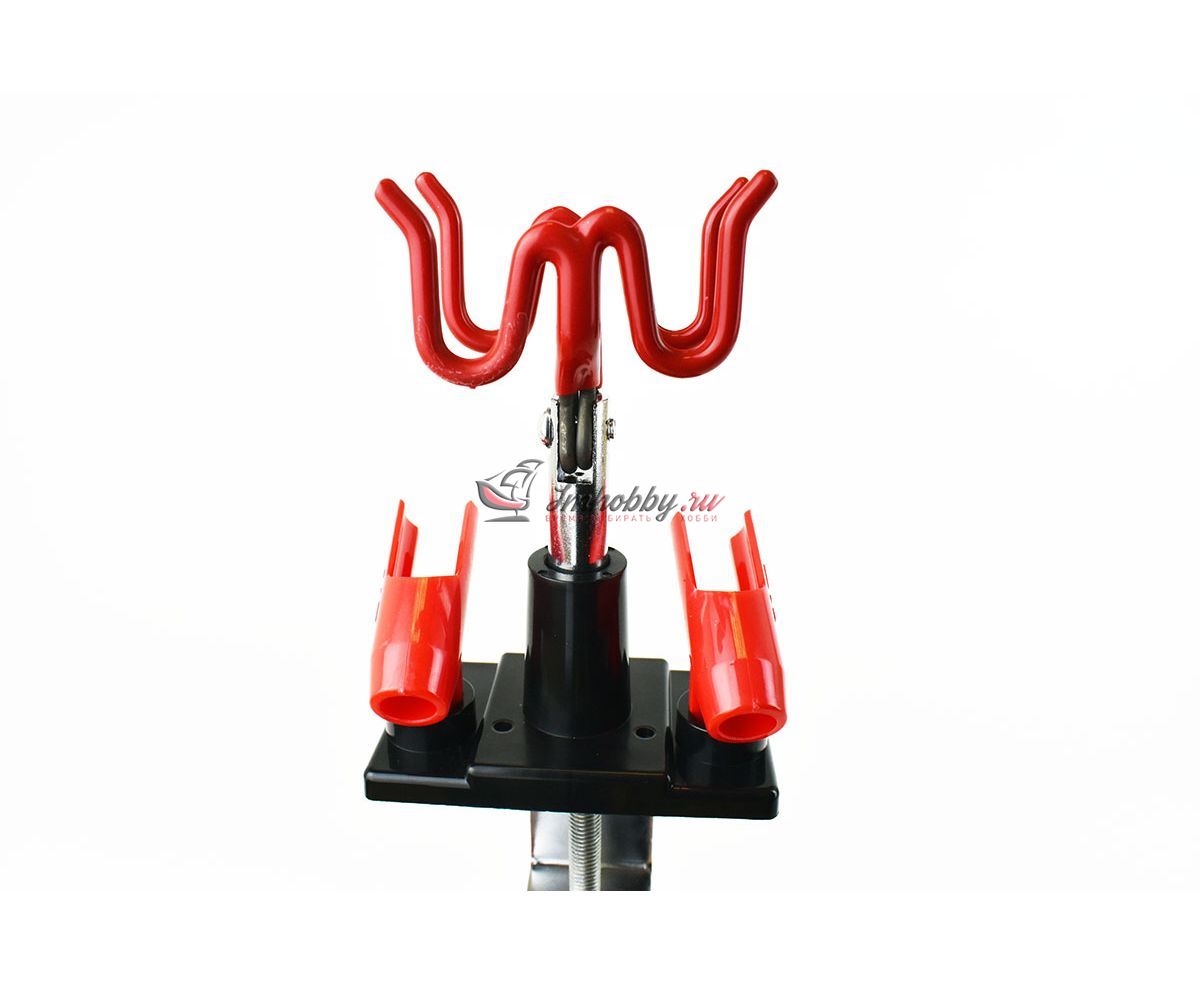 Данная конструкция позволяет одновременно использовать до 4-х аэрографов. Удобно и надежно крепится к столу струбциной.