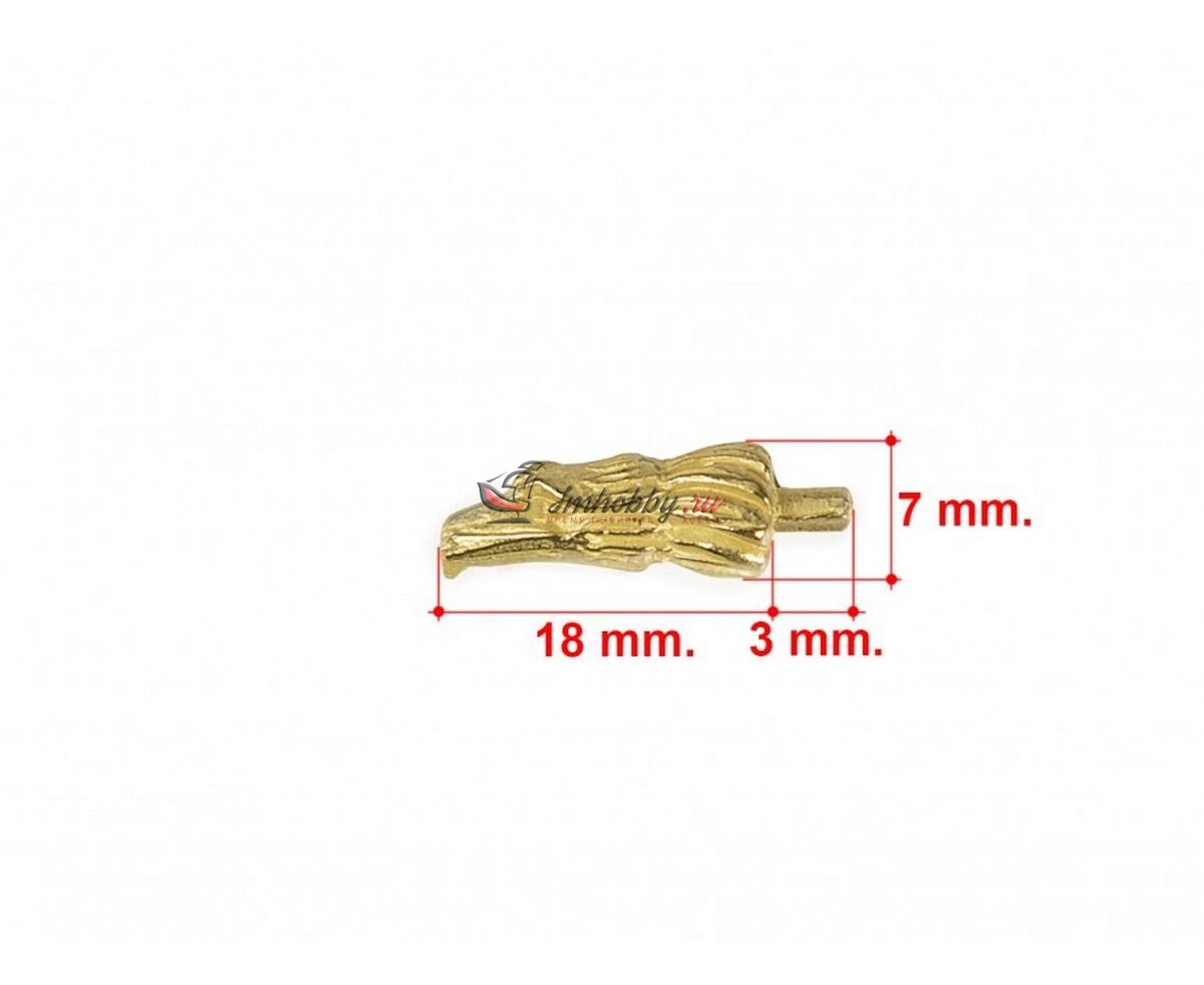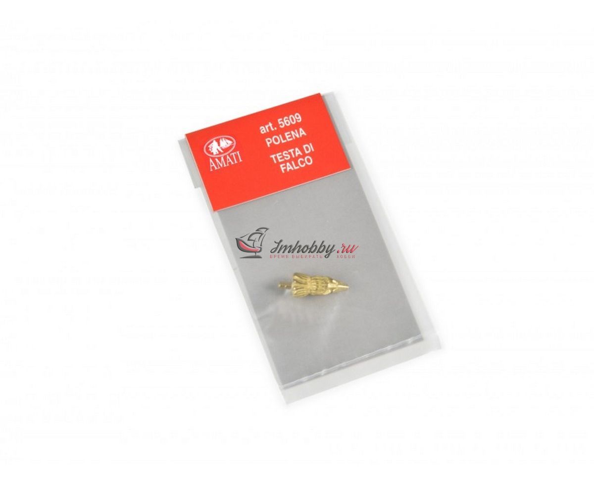 Носовая фигура в виде головы ястреба с хищным клювом. Ставится перед волнорезом на моделях небольших кораблей. Отливка из металла. Данные носовые фигуры часто имеют фабрично не прокрашенные мелкие точки, поэтому их желательно затонировать.