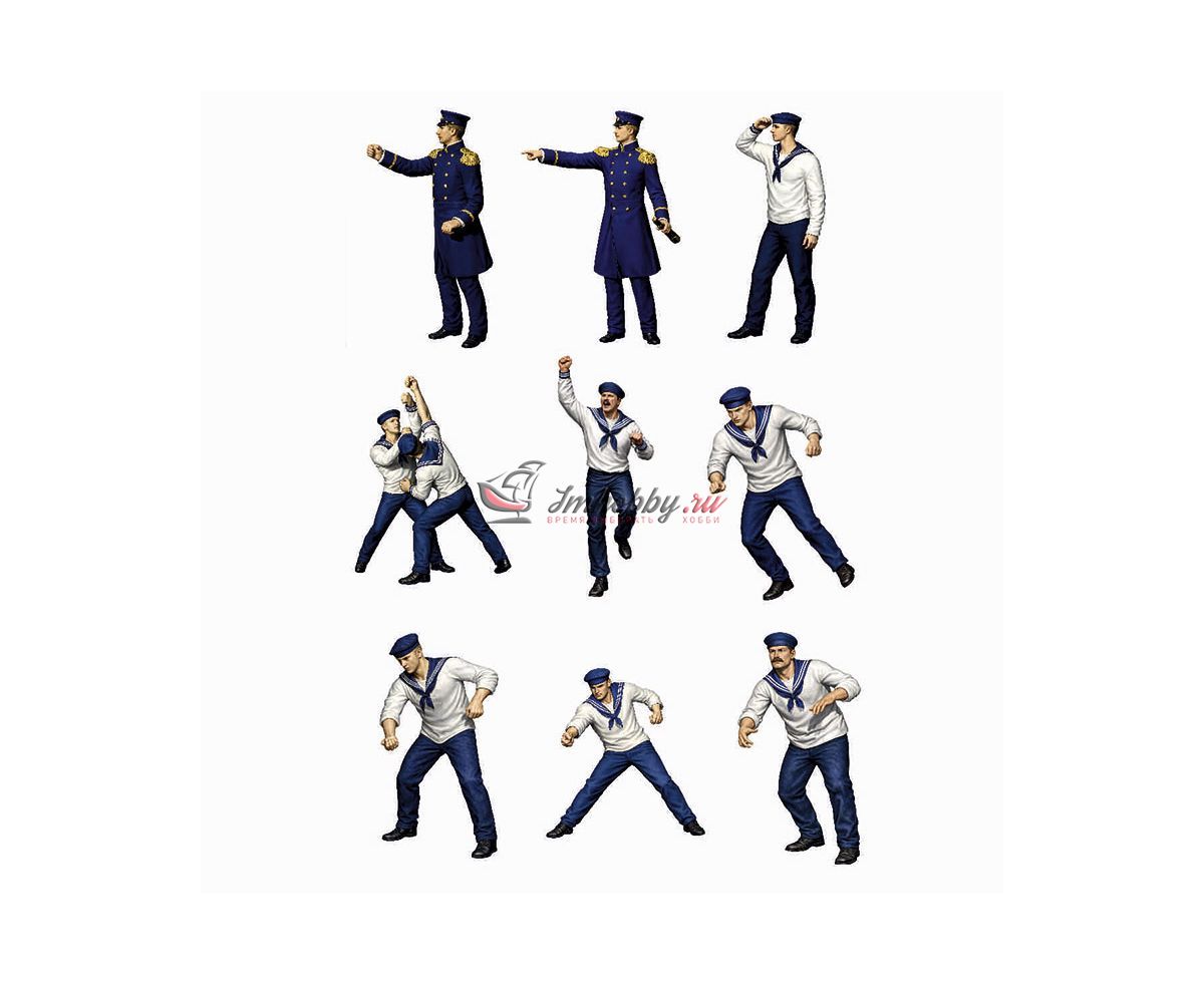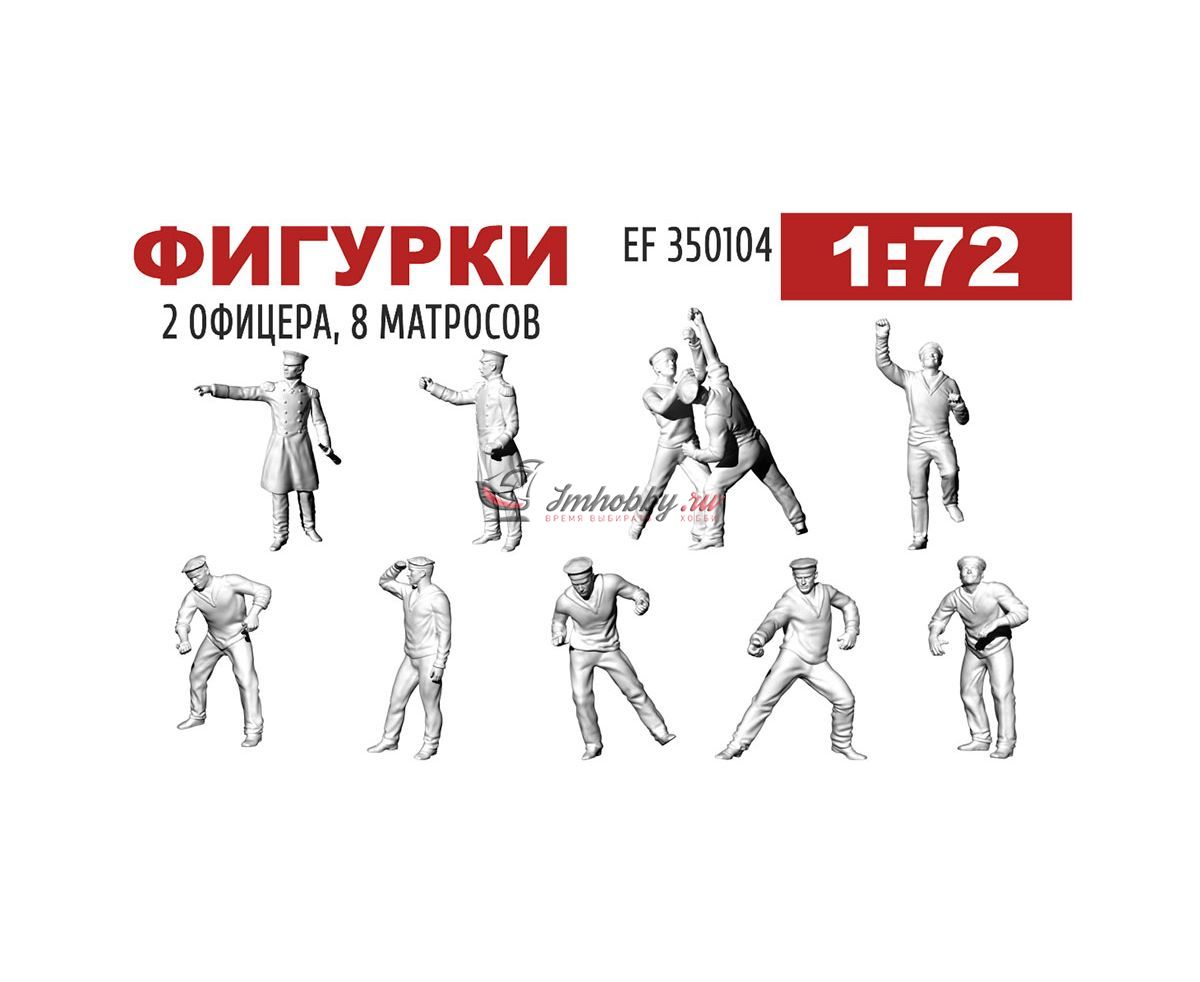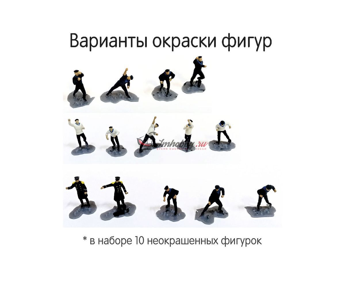 Набор из 10 фигурок команды корабля в 72 масштабе от Эскадры ESK350104. В комплекте 2 офицера и 8 матросов. Фигурки требуется окрасить.