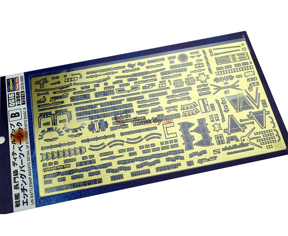 Набор фототравления Detail Up Etching Parts Basic B IJN Battleship Nagato включает в себя леерные ограждения (леера), трапы и прочие фототравленые детали.