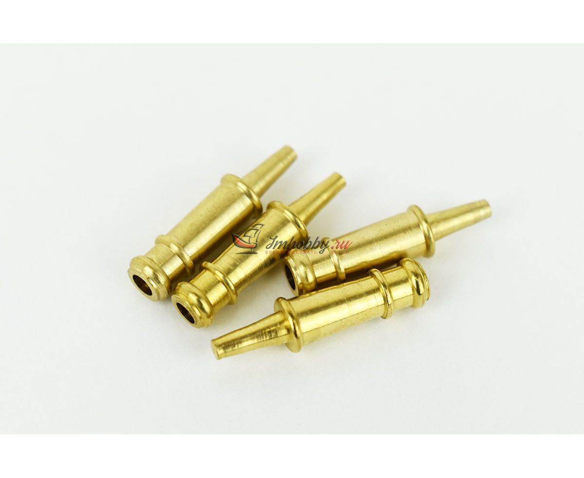 Пушечный ствол с шипом для установки в корпусе на нижних палубах. Латунь. Размер - длина ствола 15 мм + шип 7 мм. Наибольший диаметр 5 мм. Количество 4 шт.