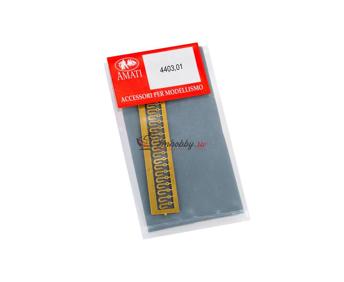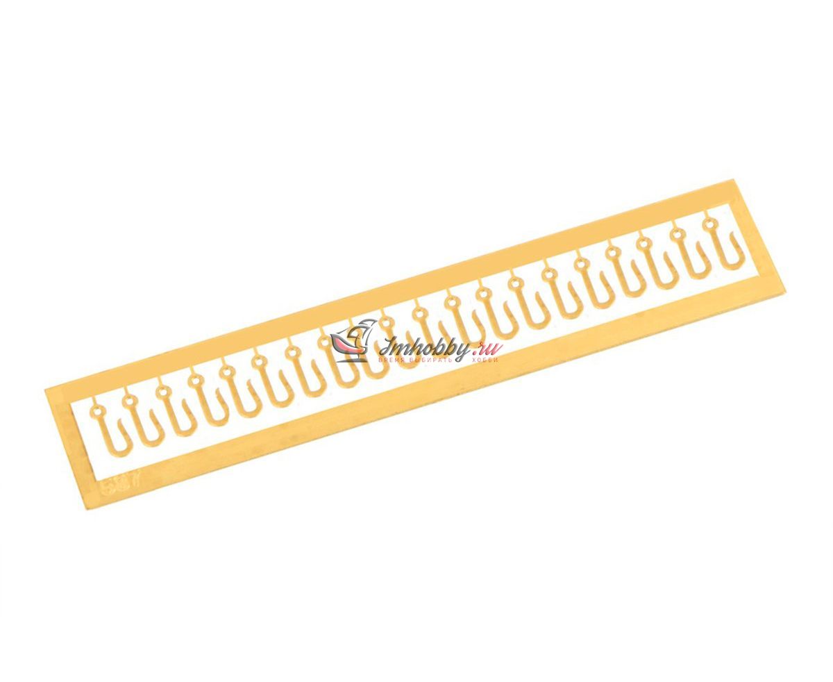 Стальной крюк, прикрепленный к концу тросов и цепей, служащий для подъема шлюпок, груза и для буксировки. Гаки выполнены фототравлением из латуни.