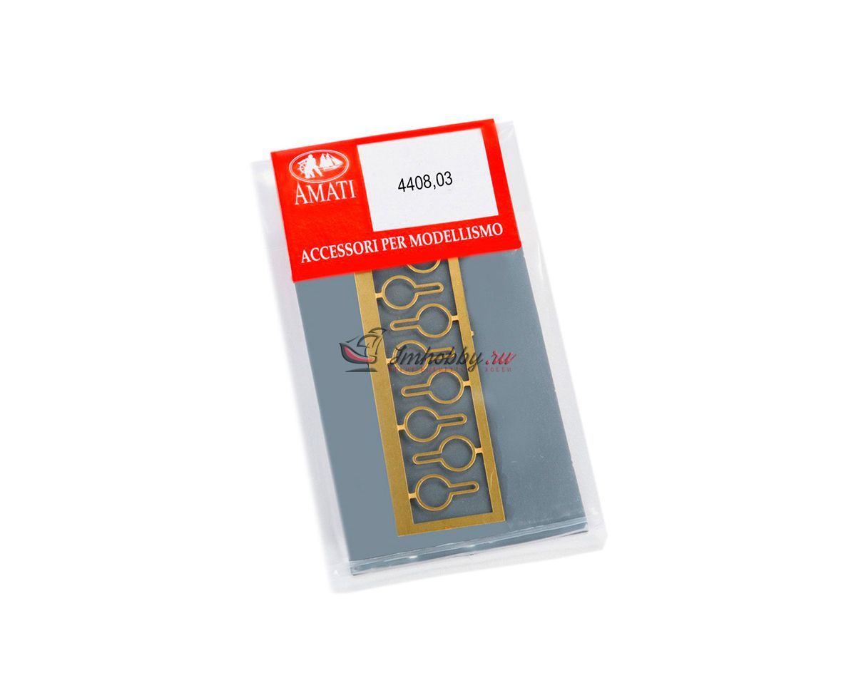 Вант-путенсы без крюков, выполнены из латуни методом фототравления. Количество 10 штук. Диаметр устанавливаемого юферса 7 мм.