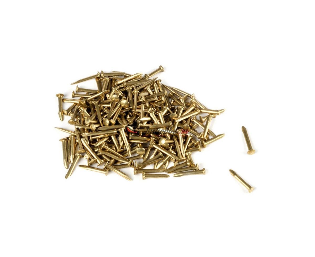 Гвоздь. Латунь. Размер 0,7х8 мм. Диаметр шляпки примерно 1мм. Количество 200 шт.