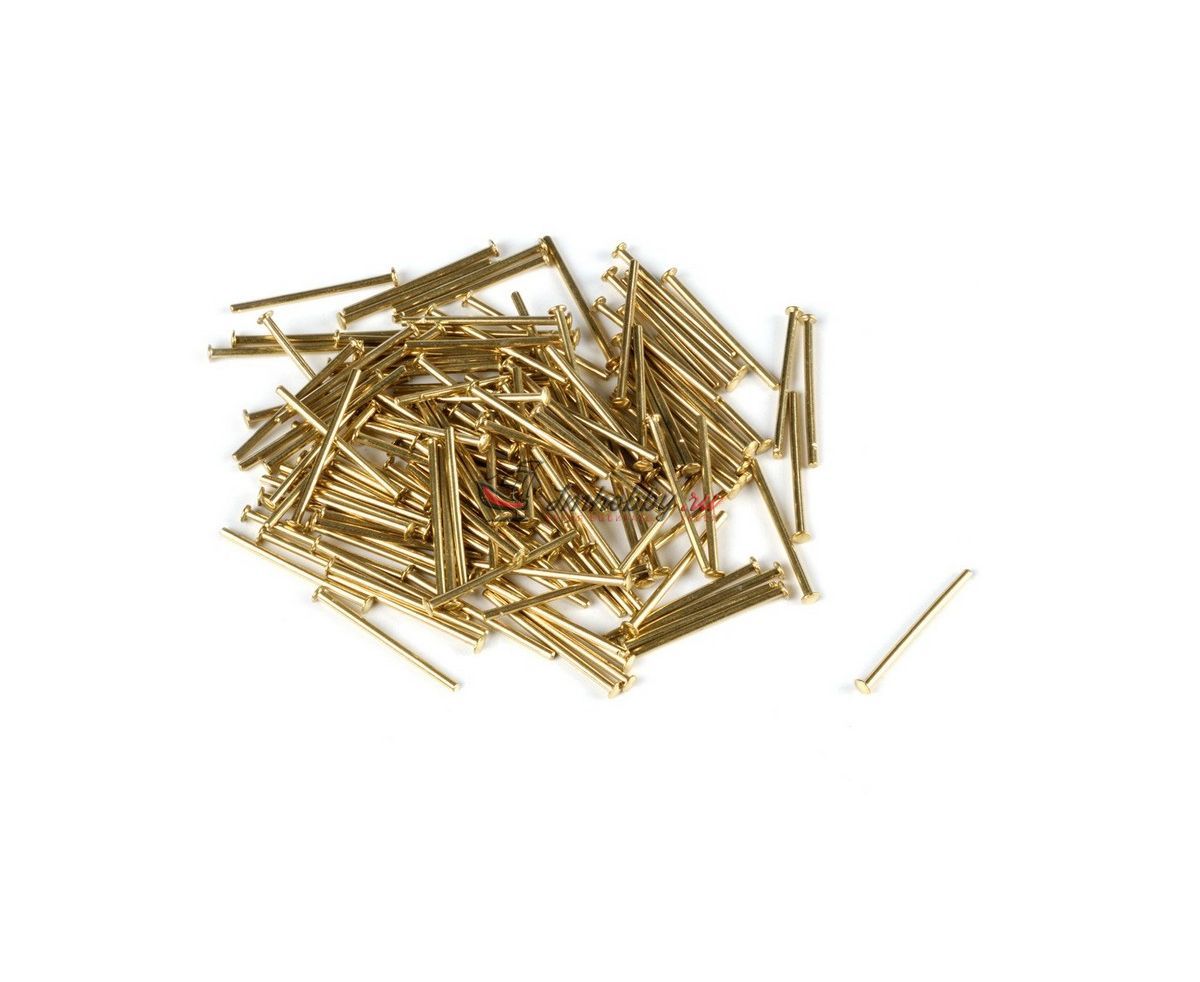 Гвоздь тупой с полукруглой шляпкой. Подходит для имитации заклепок. Латунь. Размер - длина 12 мм. Диаметр шляпки примерно 1,35мм. Количество 200 шт.