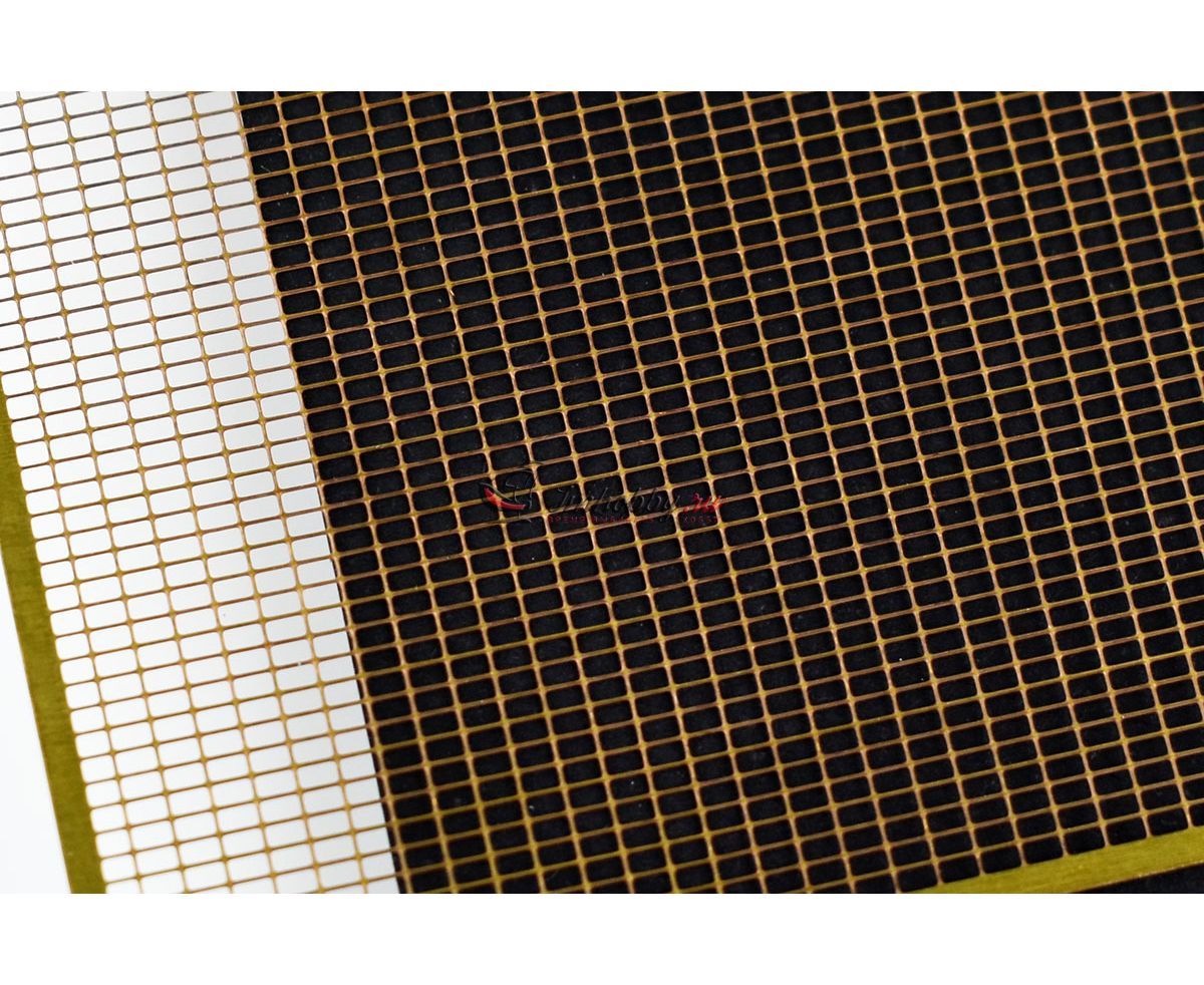 Фототравленая сетка из латуни с ячейками прямоугольной формы. Фототравленые сетки используются в моделизме для придания вашей модели реалистичного вида.