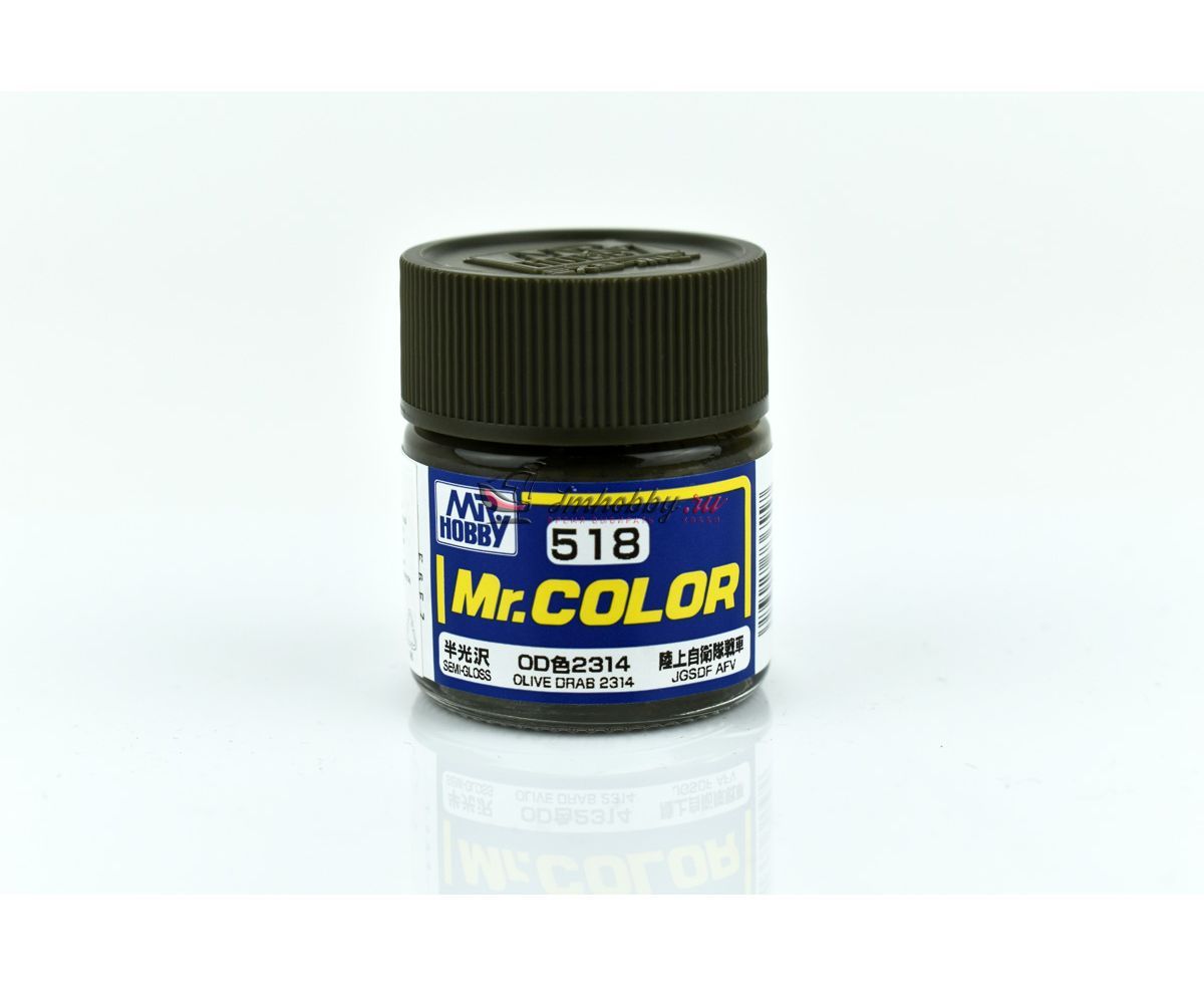 Полуматовая эмалевая (нитро-акриловая) краска от японского производителя Mr.Hobby (Gunze Sangyo), C-серии Mr.Color. Цвет оливковый (Olive Drab 2314) для БТТ армии Японии (JGSDF AFV), поставляется в круглой стеклянной баночке 10мл.
