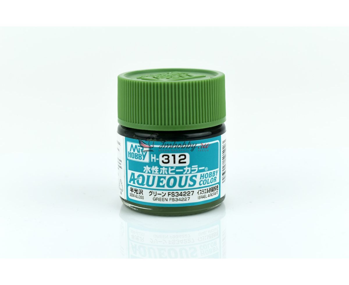 Полуматовая акриловая краска от японского производителя Mr.Hobby (Gunze Sangyo), H-серии Aqueous. Цвет Зелёный ВВС Израиля (Green FS34227 Israel Aircraft), поставляется в круглой стеклянной баночке 10мл.