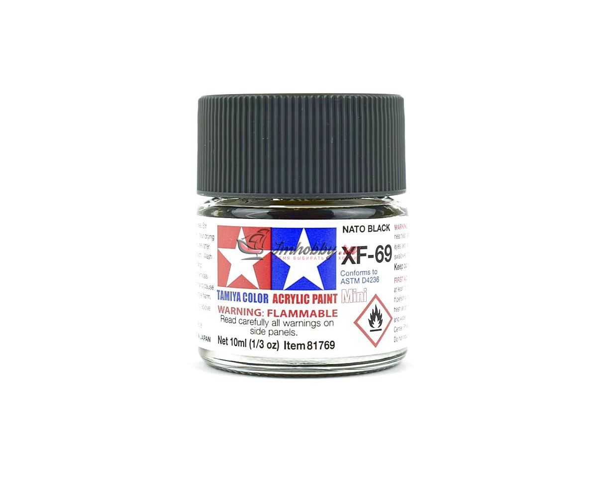 Краска акрил XF-69 черная НАТО матовая в баночке 10мл Tamiya 81769