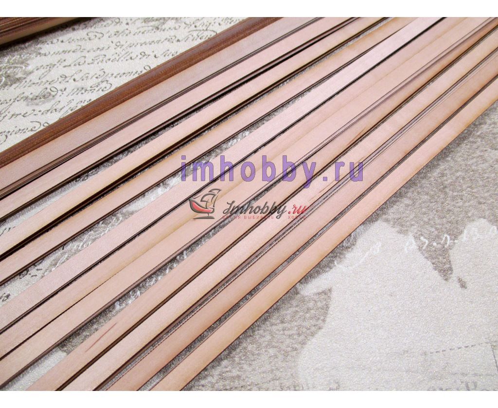 Рейка. Розовая груша. Применяется в основном в моделях высокого уровня для настила палуб, обшивки корпуса. Длина каждой рейки 50 см. Размер 0,5х4 мм. Количество 4 штуки.