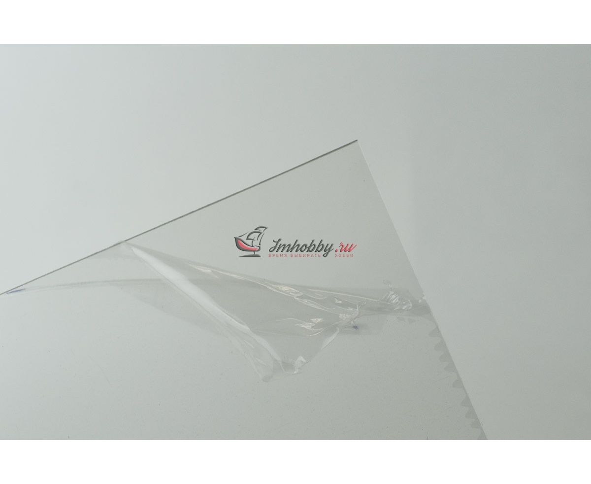 Прозрачный пластик ПЭТ. Применяется на моделях для имитации остекления. Лист толщиной 1 мм, шириной 20 см и длиной 29 см.