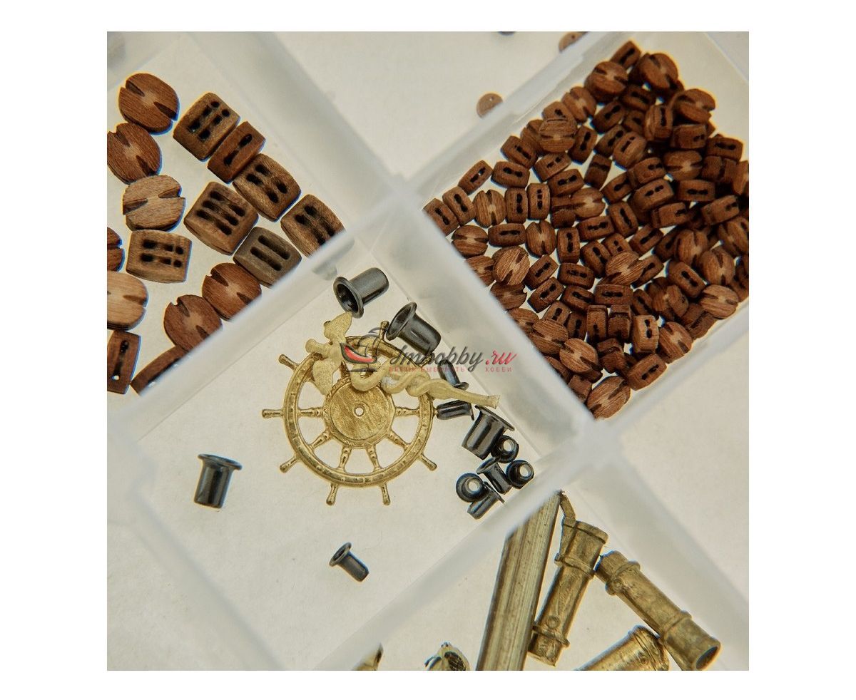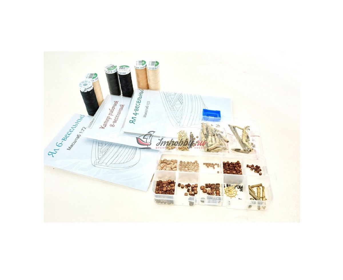 - Набор комплектуется 8-весельным рабочим катером, 4 и 6-весельными ялами, профессиональными элементами для такелажа.