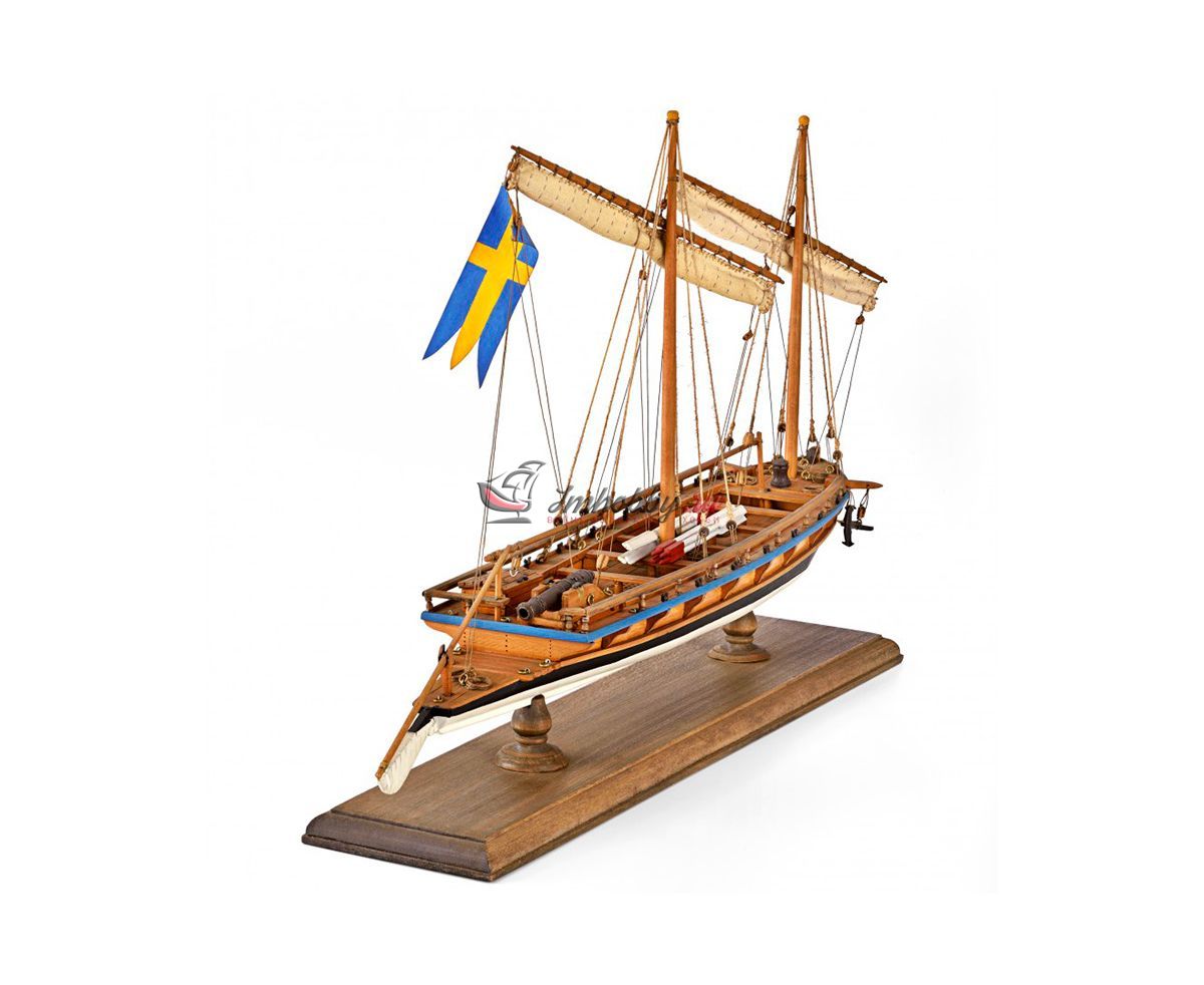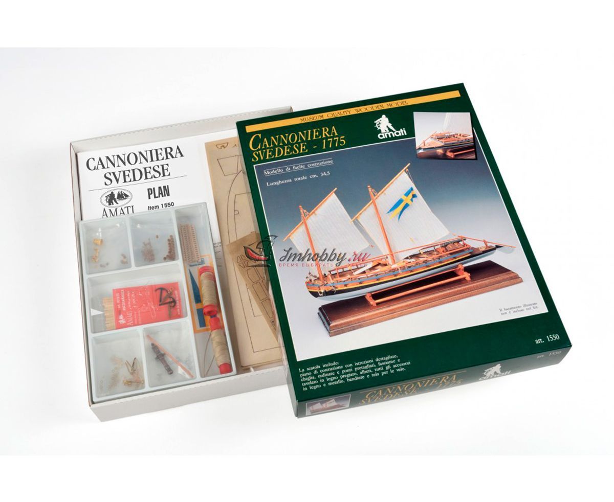 Модель корабля Cannoniera Svedese 1775 от итальянской фирмы Amati привлекает внимание за счет яркой окраски, несложной сборки и высокому качеству используемых материалов.