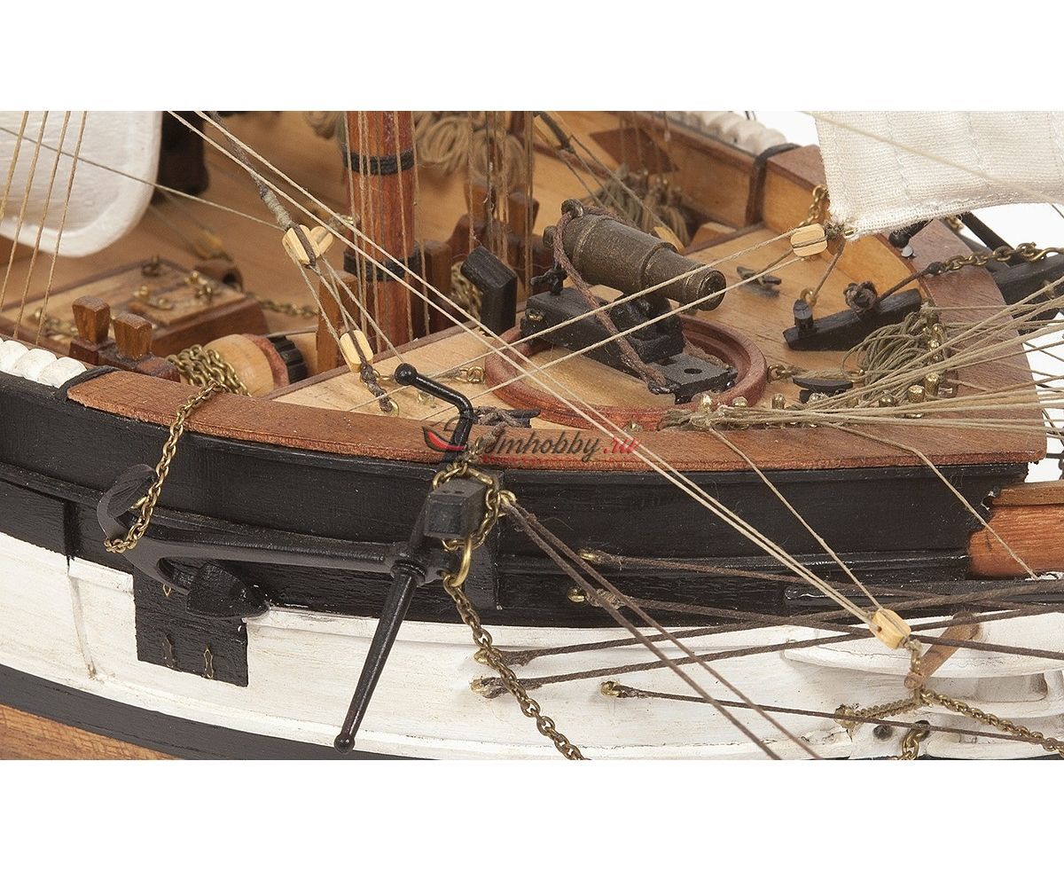 Деревянные блоки, юферсы и пушечные лафеты полностью сделаны и готовы к установке. Сборная модель парусника содержит множество металлических деталей, в том числе пушки, брашпиль, шлюпбалки, рулевое колесо, якоря. Модель HMS Beagle комплектуется нитями для такелажа, готовыми парусами, основанием-подставкой. Корпус модели окрашивается в черный и белый цвета, а затем покрывается лаком.