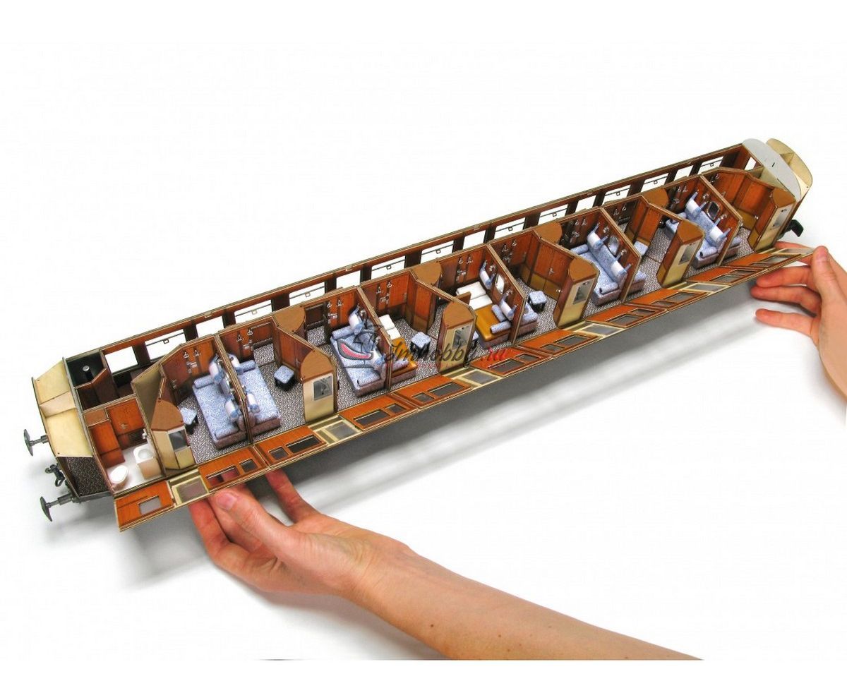 В своей модели Amati создала полный интерьер вагона, вплоть до умывальников, мыльниц и зеркал в каждом купе, общего туалета, бойлера и радиаторов отопления в коридоре. Чтобы увидеть все эти детали, крыша вагона сделана съемной.