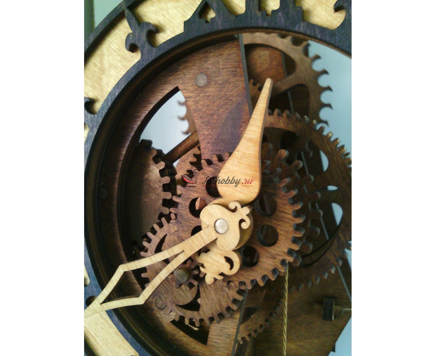 Часы приводятся в действие подвесной гирькой, в которую вам потребуется засыпать 1-1,5 кг груза (мы рекомендуем красивые гладкие камни диаметром 1-2 см). Конструкция часов рассчитана на два варианта использования гирьки: полноценный, когда одного завода гирьки хватает на сутки, и облегчённый режим, когда вес гирьки можно уменьшить, но заводить часы придётся 2 раза в сутки. Кроме того, в двух экземплярах дан и анкерный механизм, т.к. именно анкер является самым изнашиваемым механизмом часов. Как и во всех механических часах подобной конструкции, точность хода регулируется положением линзы маятника. Хорошо настроенные часы обеспечат вам точность хода 1-2 минуты в сутки. И, в заключение, ещё раз повторим: "Удиви их всех!!!"