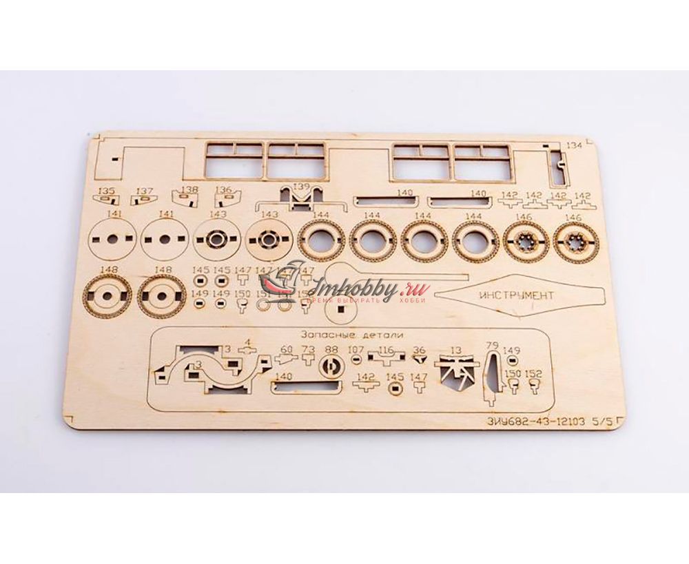Сборная масштабная модель троллейбуса ЗИУ-682 из фанеры. Детали изготовлены методом лазерной резки. Для сборки понадобятся столярный клей ПВА, модельный нож, надфиль (или наждачная бумага/губка). При желании модель можно окрасить или покрыть морилкой/лаком.