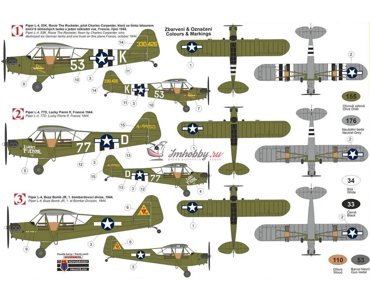 Piper L-4 Grasshopper w/Bazookas масштаб 1:72 Kovozavody Prostejov KPM0190