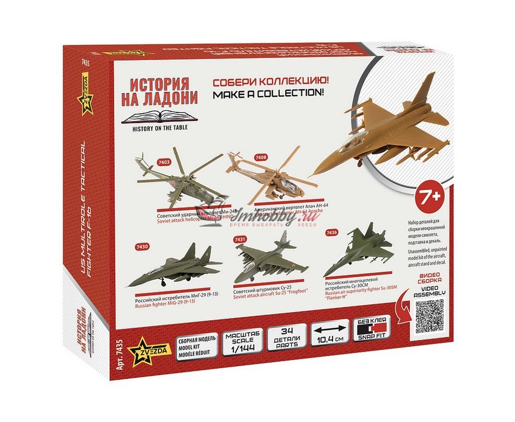 Сборная модель Американский многофункциональный легкий истребитель F-16 (F-16) в масштабе 1:144, артикул 7435. Американский многоцелевой истребитель F-16 был разработан в 1974 году и выпускается по сей день. Благодаря своей невысокой цене он стал самым массовым истребителем четвёртого поколения и одним из самых массовых боевых самолетов современности.