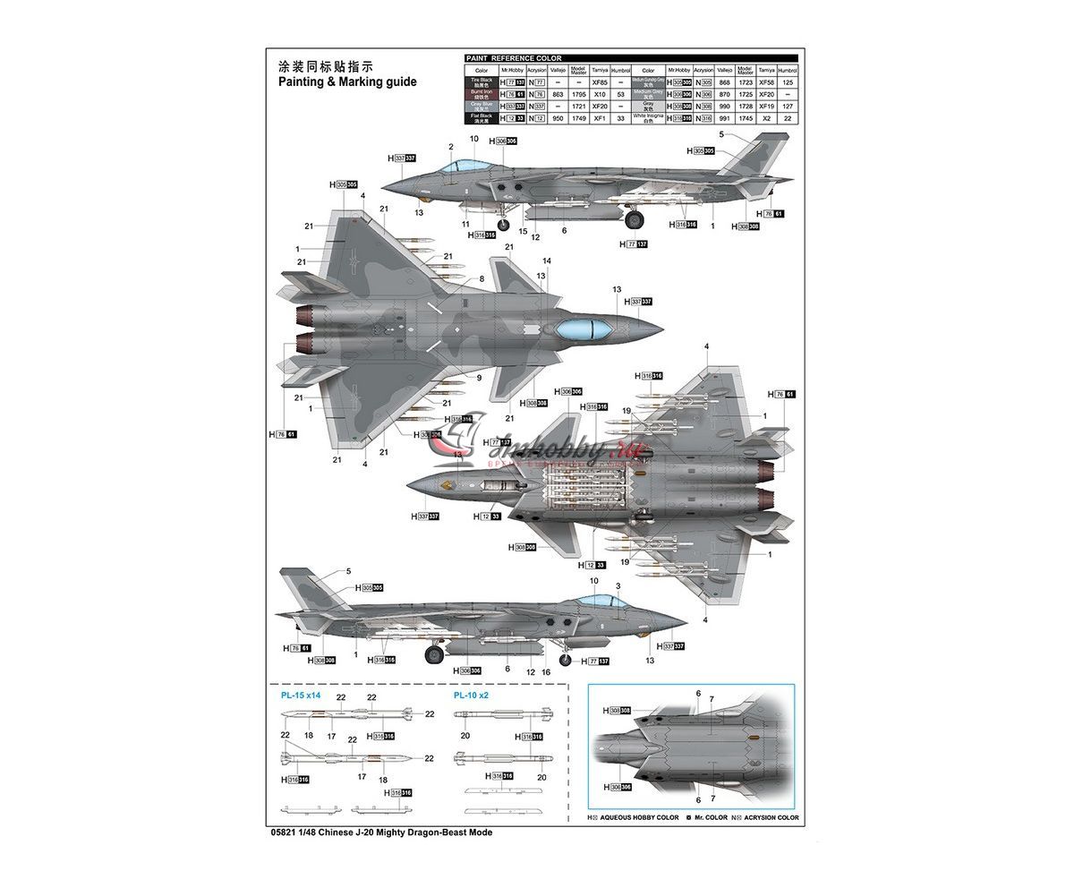 Chinese J-20 Mighty Dragon-Beast Mode масштаб 1:48 Трубач TR05821