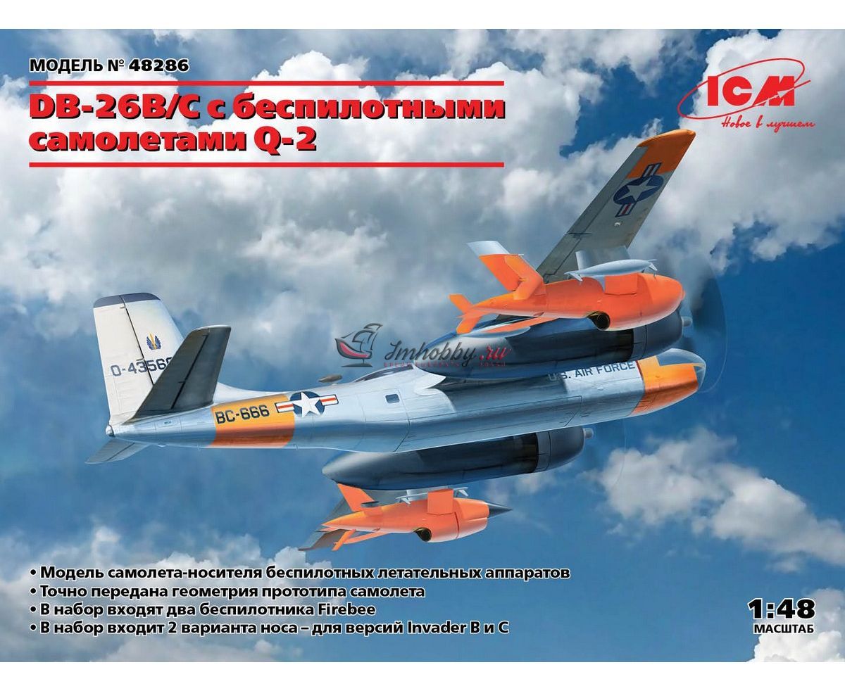 DB-26B/C самолет с беспилотными самолетами Q-2 масштаб 1:48 ICM48286