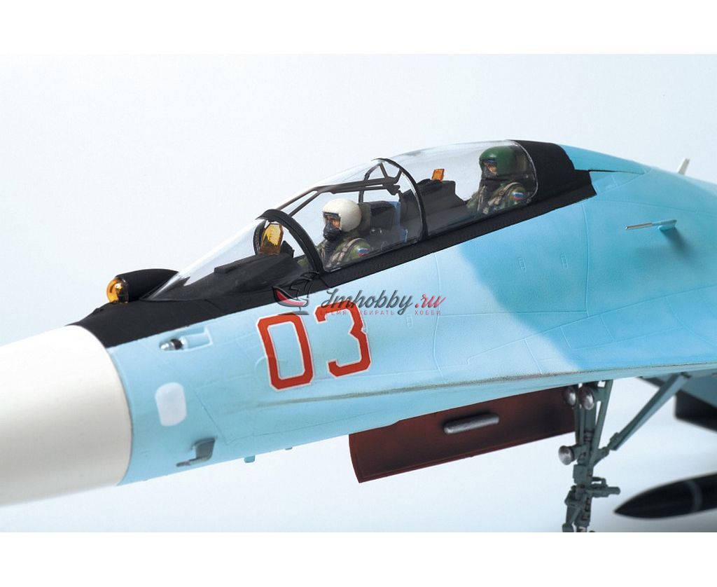 Сборная модель Российский многоцелевой истребитель завоевания превосходства в воздухе Су-30СМ (SU-30SM Flanker H) в масштабе 1:48, артикул 4808. СУ-30СМ это многоцелевой истребитель поколения 4++, предназначенный для уничтожения воздушных и наземных целей. Несет на себе вооружение класса "воздух-воздух" и "воздух-поверхность".