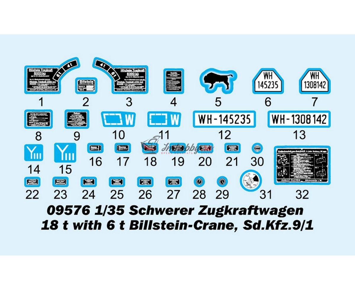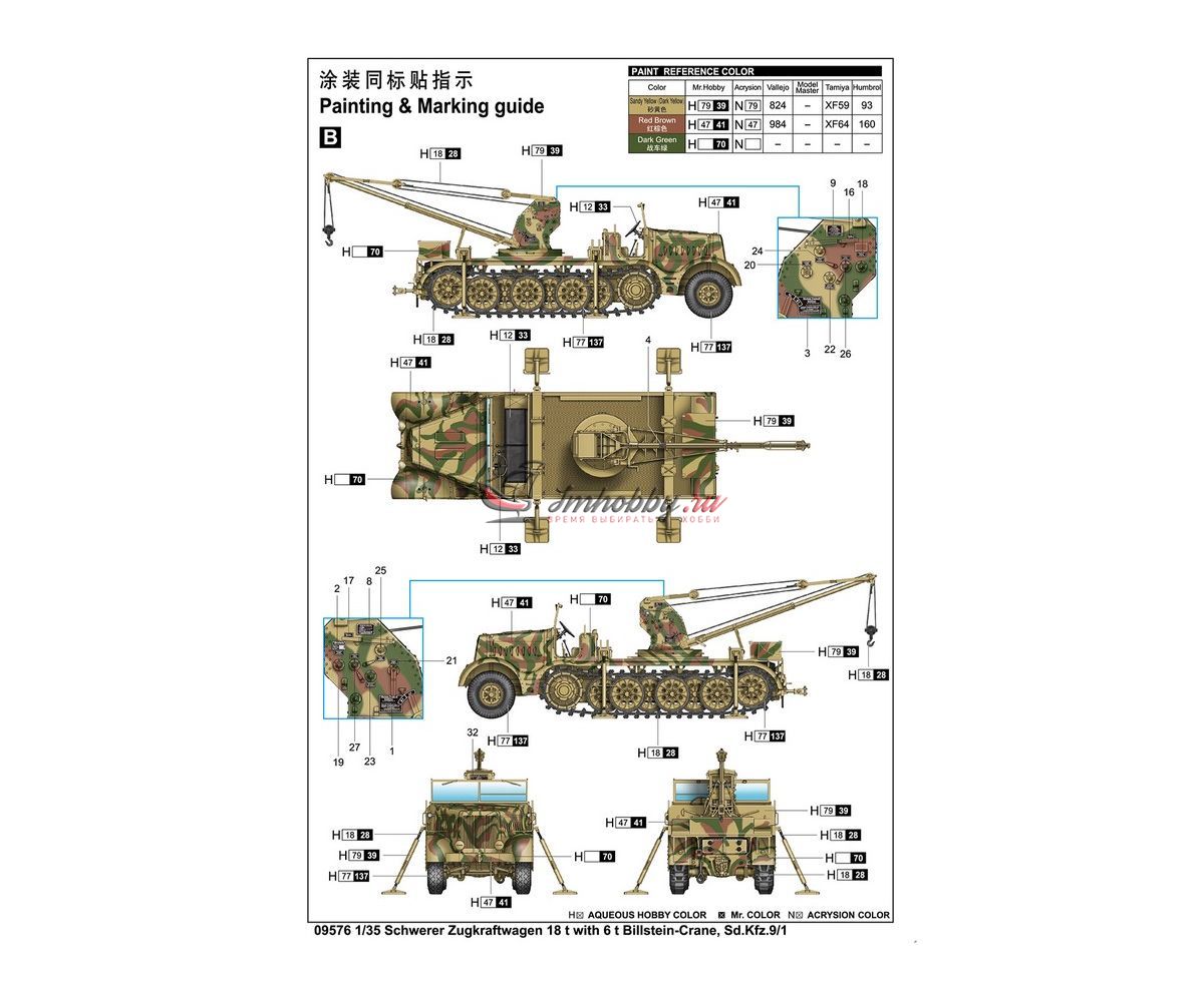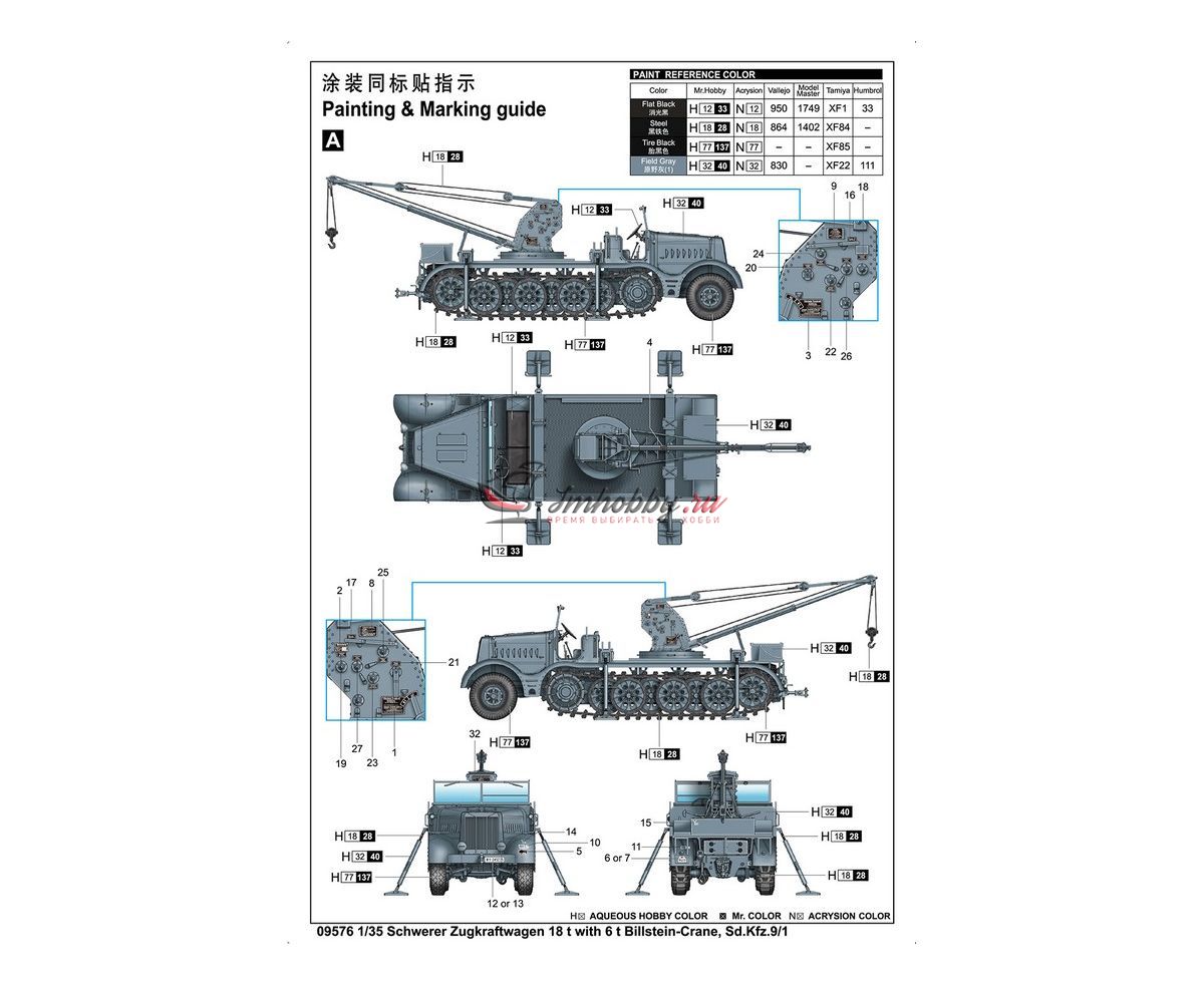 Schwerer Zugkraftwagen 18 t with 6 t Billstein-Crane, Sd.Kfz.9/1 масштаб 1:35 Трубач TR09576