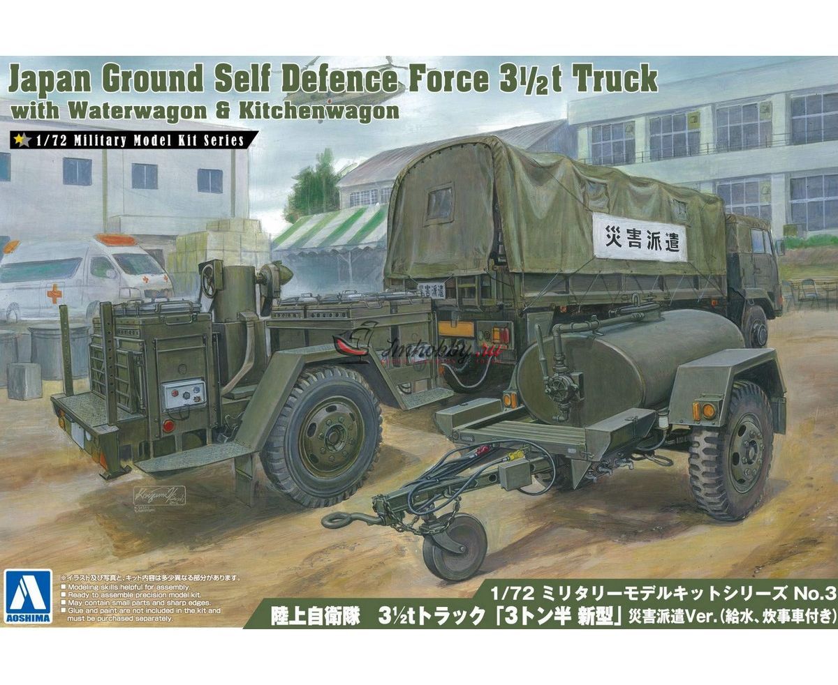 Japan Ground Self Defence Force 3 1/2t Truck with Waterwagon & Kitchenwagon масштаб 1:72 Aoshima AO00235