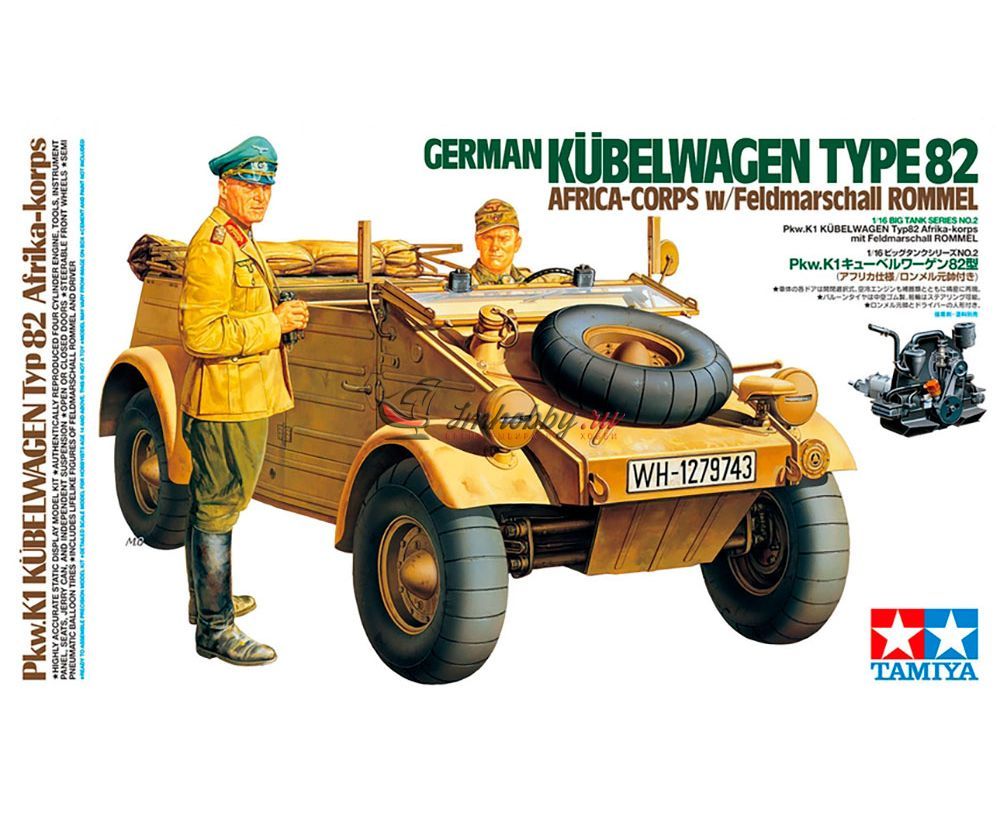 Kubelwagen Type 82 Africa Corps, с фигурой водителя и фельдмаршала Роммеля масштаб 1:16 Tamiya 36202