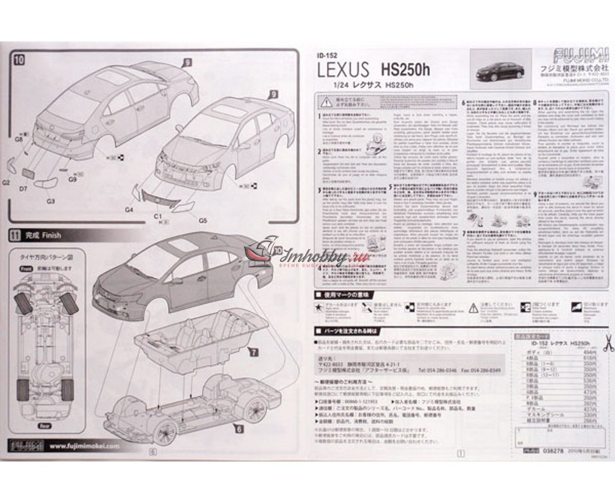 Lexus HS250h масштаб 1:24 Fujimi FU03827