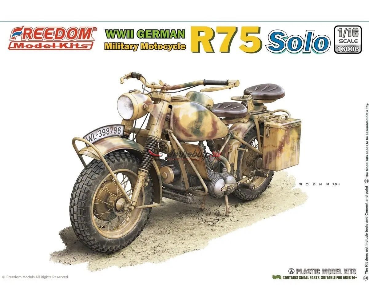 BMW R75 Motorcycle Solo WWII German масштаб 1:16 Freedom Model Kits FMK16006