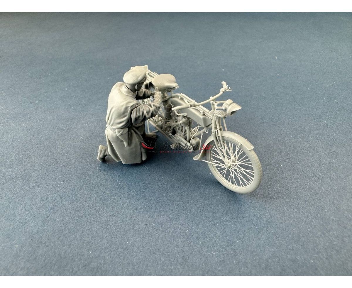 British Dispatch Rider checking motorcycle масштаб 1:35 Copper State Models CSMF35-058