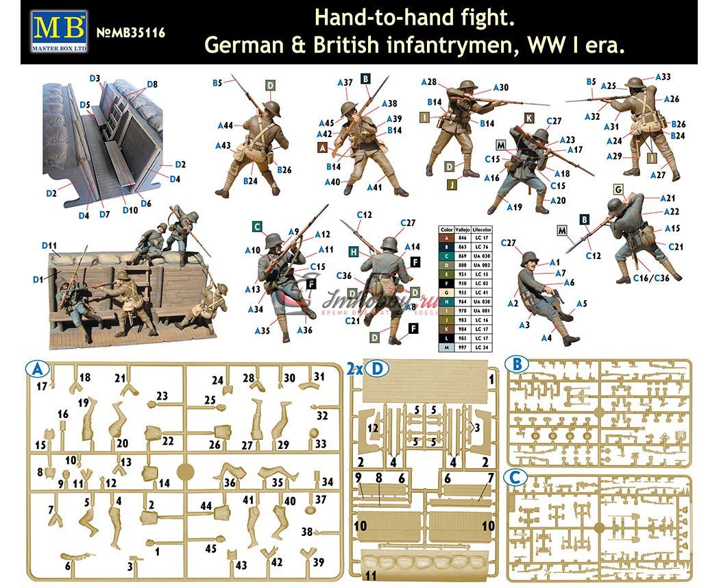 Рукопашный бой, немецкие и британские пехотинцы, 1МВ масштаб 1:35 MB35116