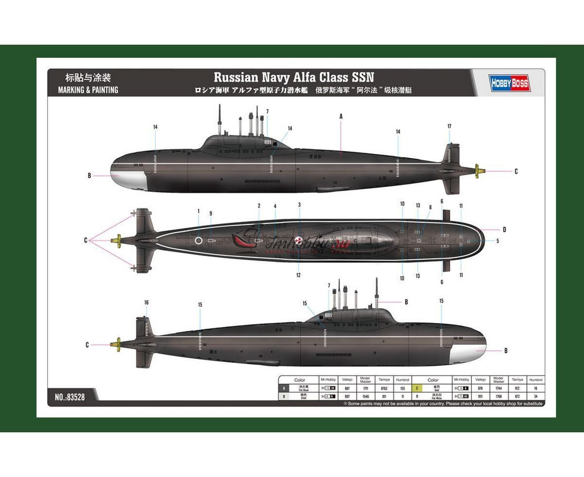 Russian Navy Alfa Class SSN submarine масштаб 1:350 Hobby Boss HB83528