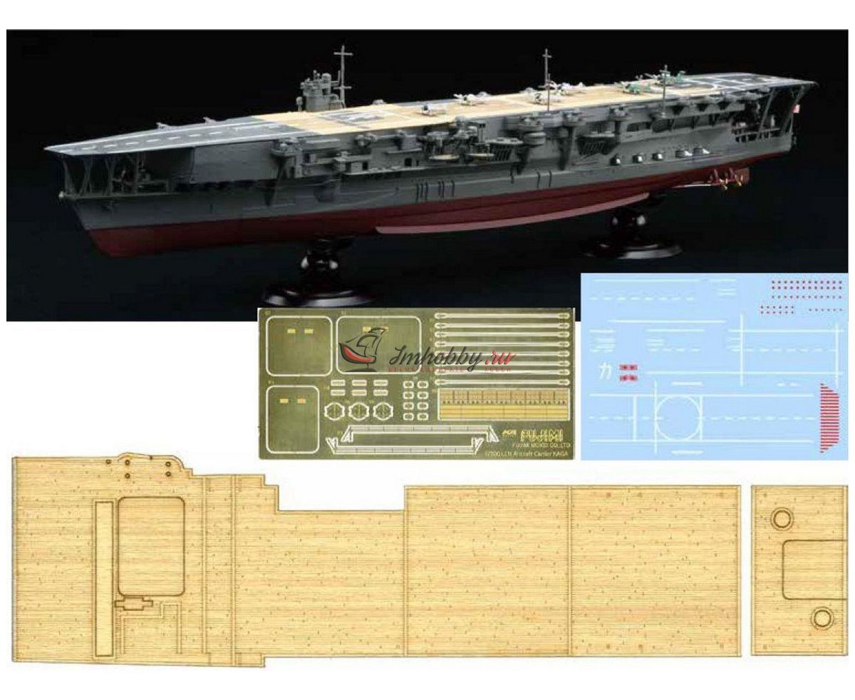 Full-Hull IJN Series Aircraft Carrier Kaga Special Version w/Wooden Deck Sticker масштаб 1:700 Fujimi FU45230
