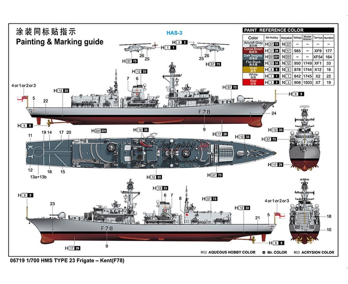 HMS Type 23 Frigate Kent (F78) масштаб 1:700 Трубач TR06719