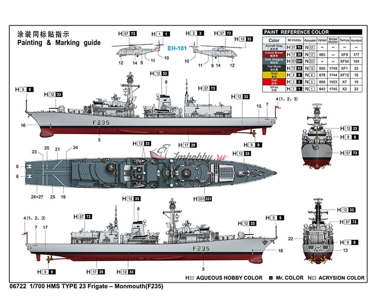 HMS Type 23 Frigate Monmouth (F235) масштаб 1:700 Трубач TR06722