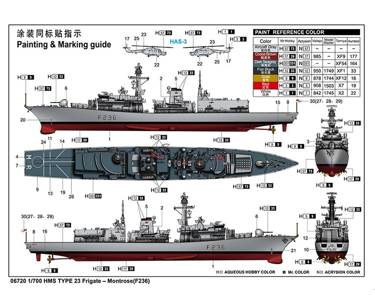 HMS Type 23 Frigate Montrose (F236) масштаб 1:700 Трубач TR06720