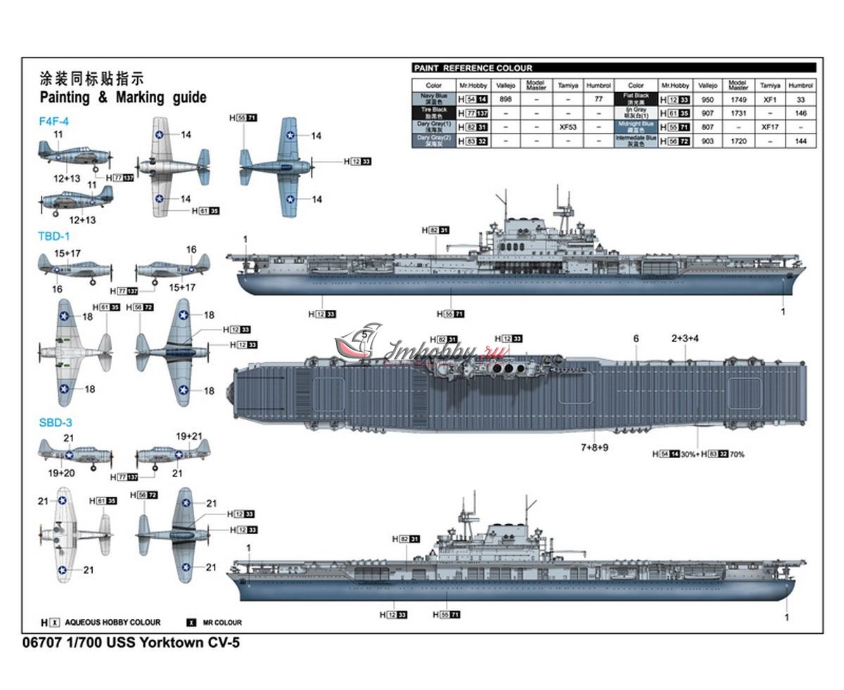 USS Yorktown CV-5 масштаб 1:700 Трубач TR06707