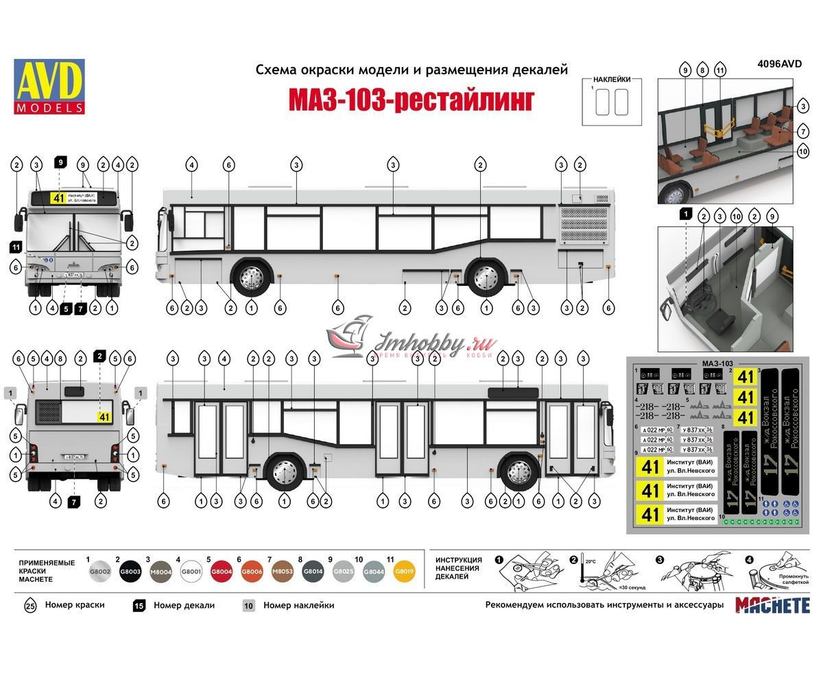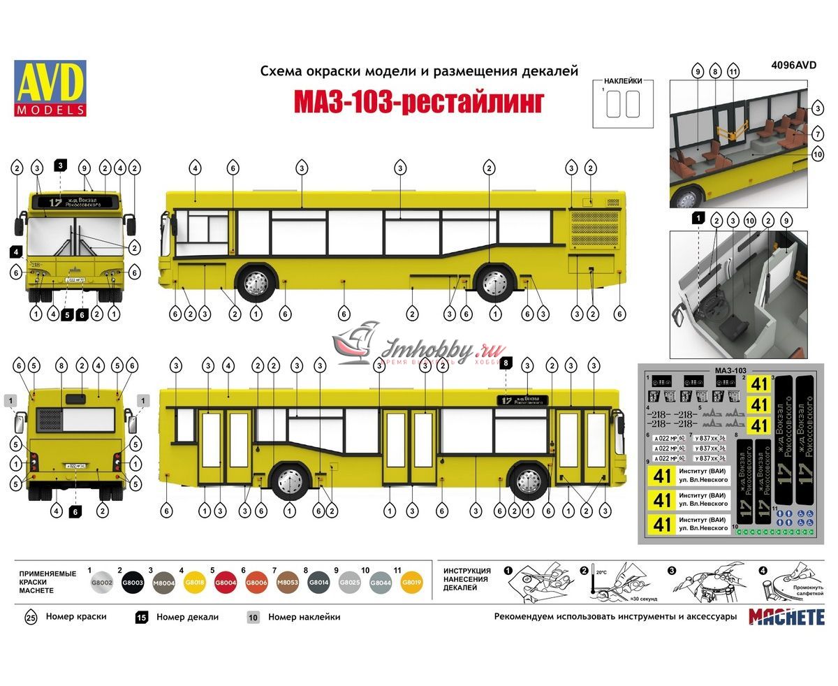 Автобус МАЗ-103 (Рестайлинг) (KIT) металл масштаб 1:43 AVD Models 4096AVD