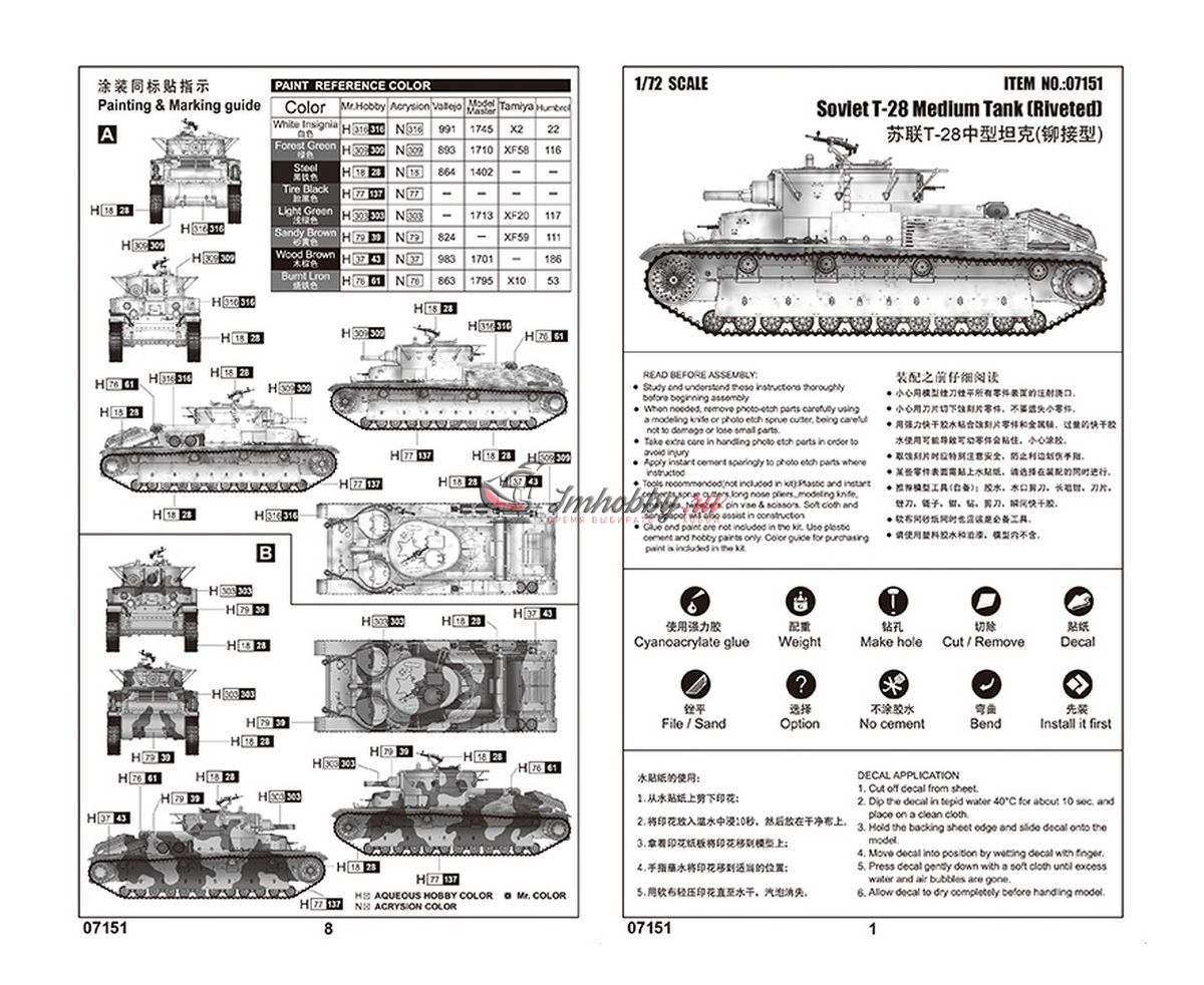 Soviet T-28 Medium Tank (Riveted) масштаб 1:72 Трубач TR07151