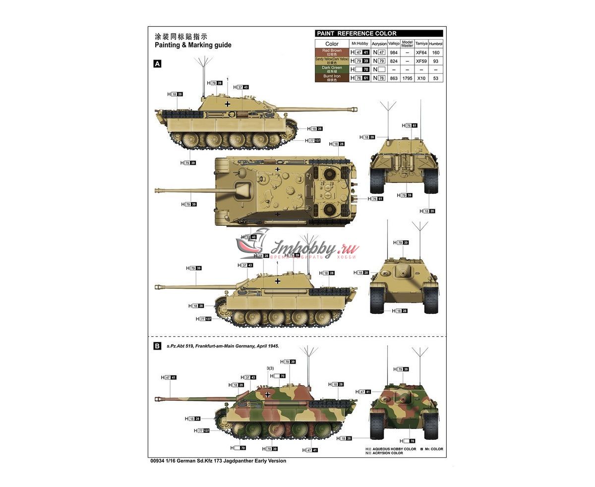 German Sd.Kfz 173 Jagdpanther Early Version масштаб 1:16 Трубач TR00934