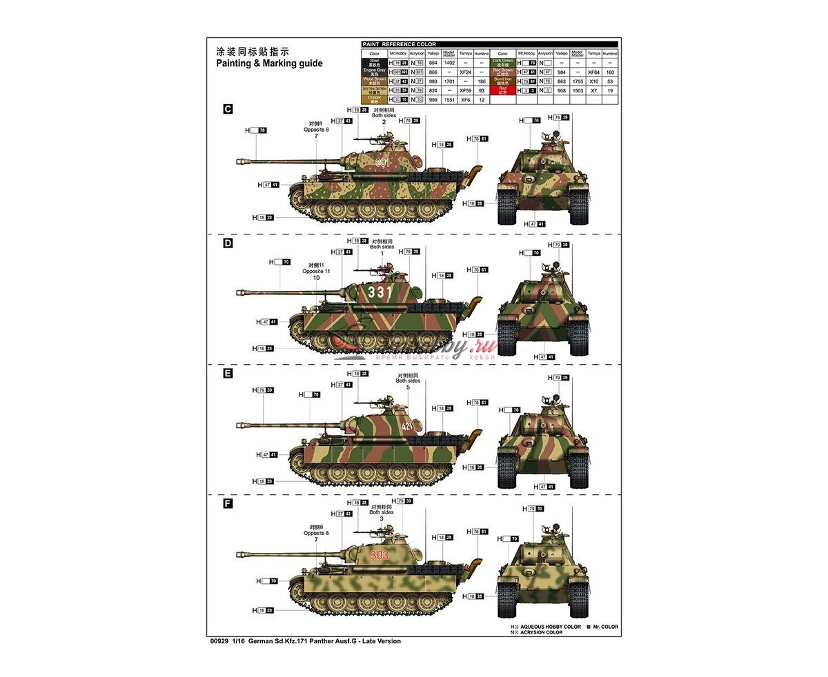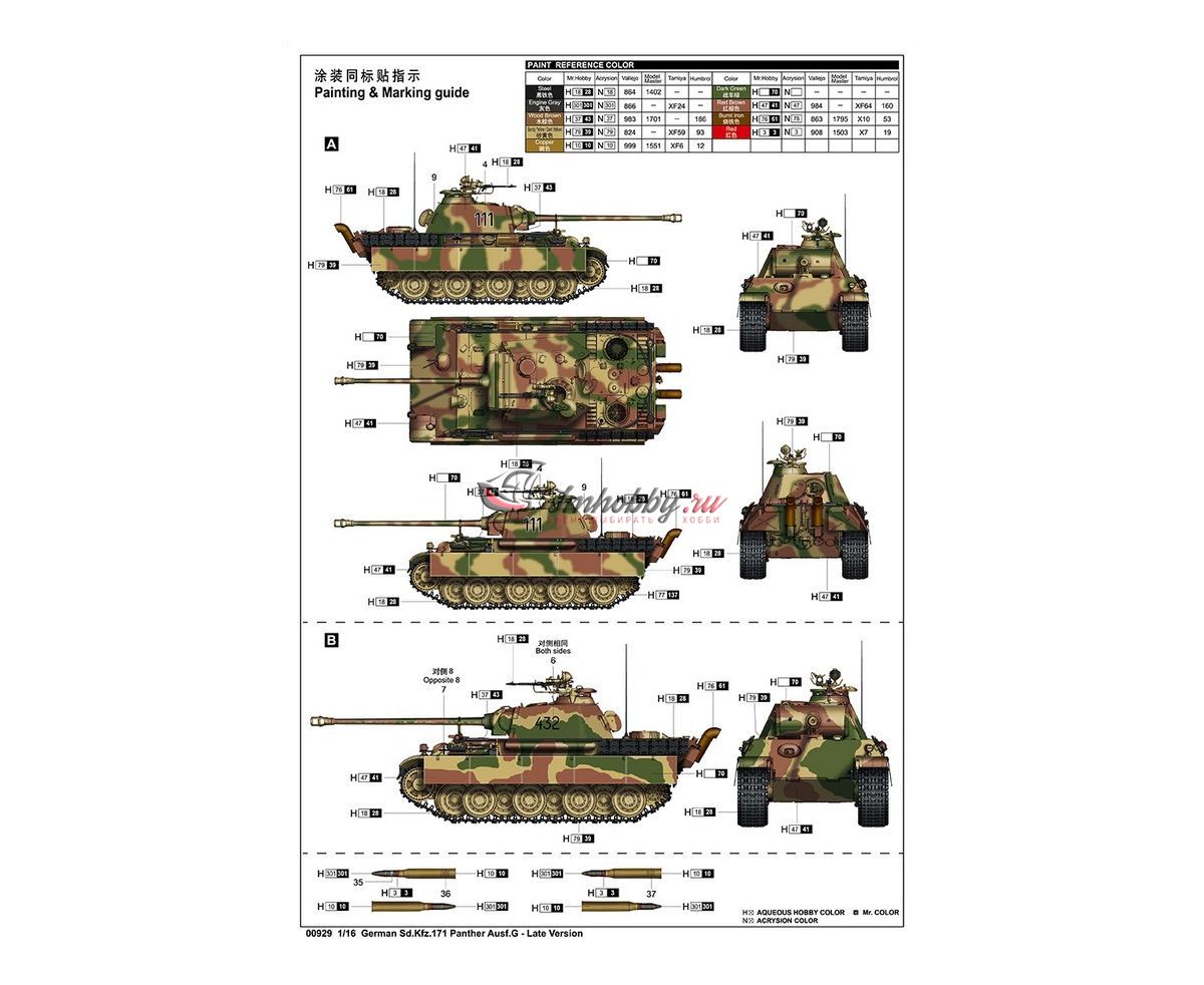 German Sd.Kfz.171 Panther Ausf.G Late Version масштаб 1:16 Трубач TR00929