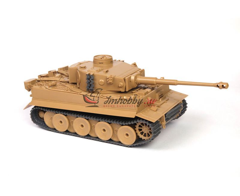 Сборная модель немецкого тяжелого танка Т-6 Тигр (T-VI Tiger I AUSF.E) в масштабе 1:35. Тяжелый танк Pz.VI «Тигр» был разработан в 1942 году фирмой «Хеншель» и до сего дня остается символом немецкой танковой мощи, хотя выпустить этих танков успели не так уж много – всего 1354 штуки. На момент создания эта машина была сильнейшей по вооружению и бронированию среди всех танков мира: лобовая броня толщиной 100 мм; 88-мм пушка, переделанная из знаменитого германского зенитного орудия; плюс отличный прицел, позволяющий вести точный огонь на дальних дистанциях, давали возможность танкистам «Тигра» уничтожать технику союзников по антигитлеровской коалиции целыми колоннами даже в конце войны.