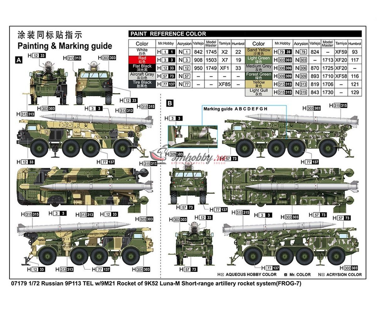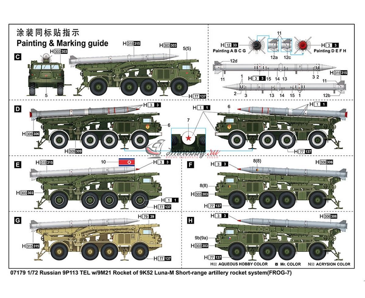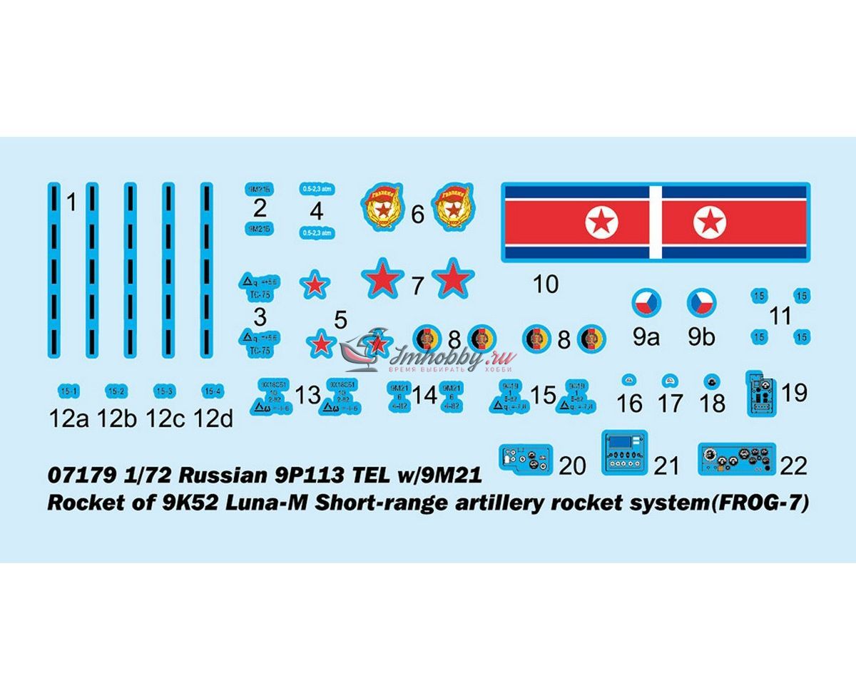 Russian 9P113 TEL w/9M21 Rocket of 9K52 Luna-M Short-range artillery rocket system (FROG-7) масштаб 1:72 Трубач TR07179