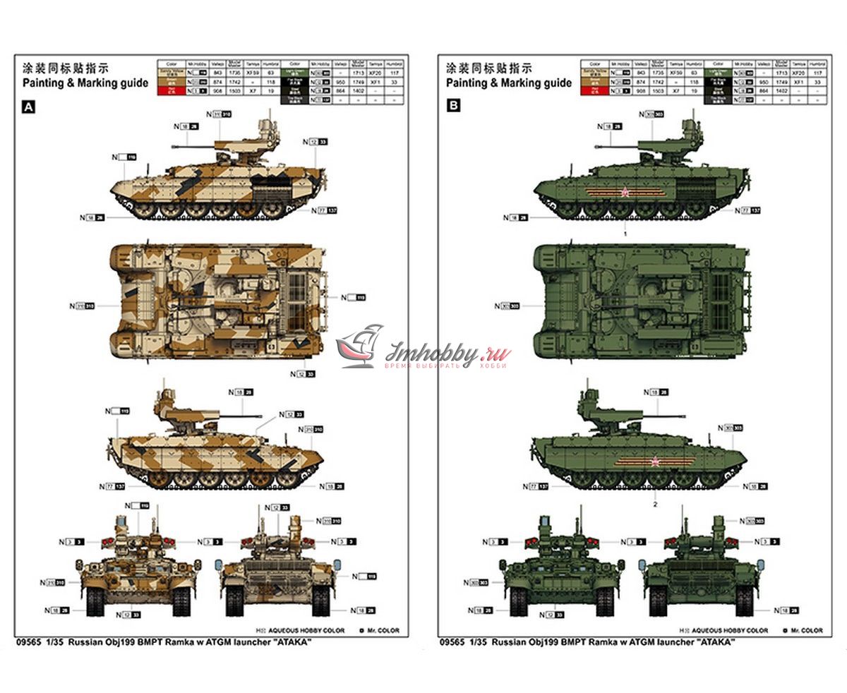 Russian Obj199 BMPT Ramka w ATGM launcher ATAKA масштаб 1:35 Трубач TR09565