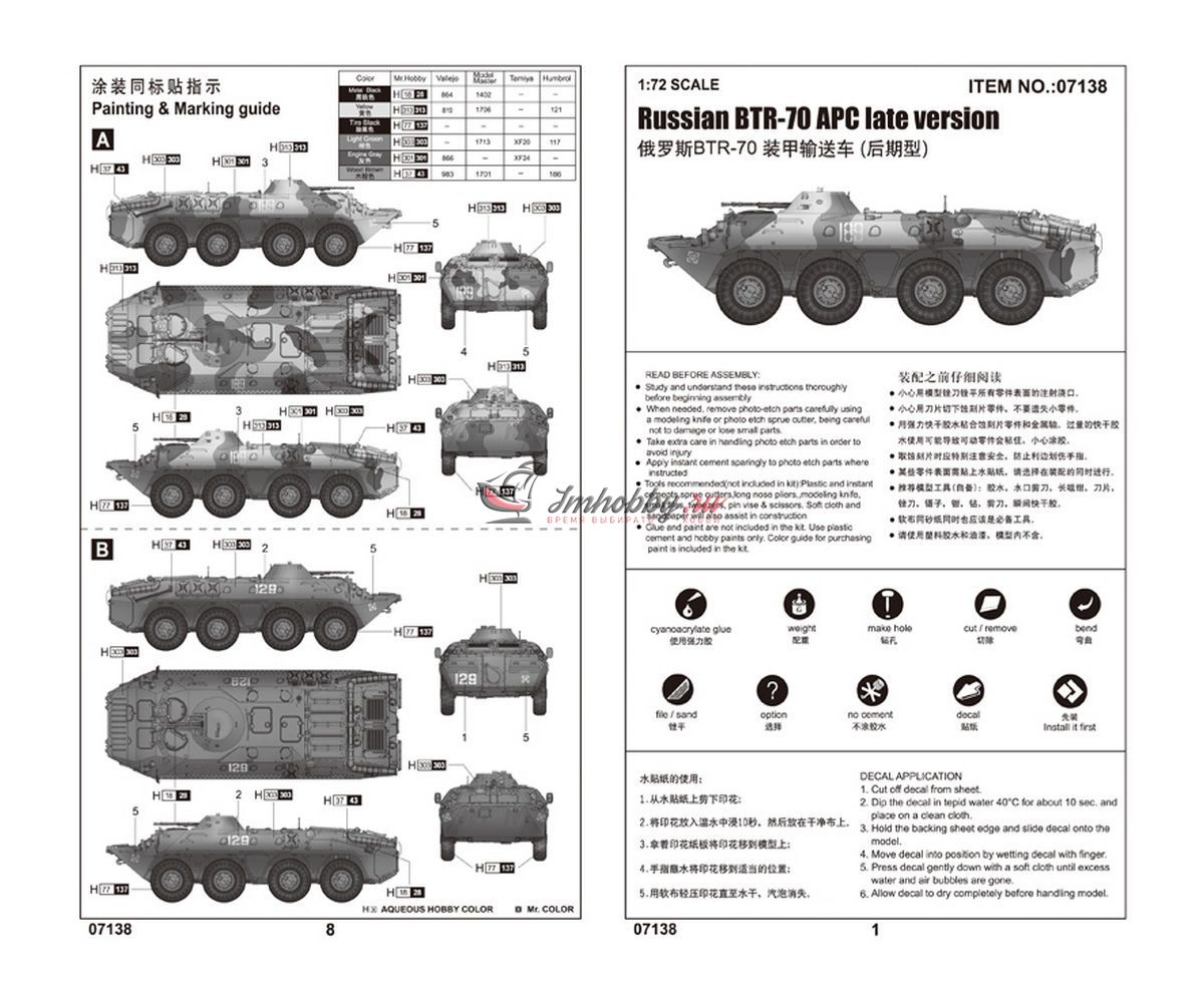 Russian BTR-70 APC late version масштаб 1:72 Трубач TR07138